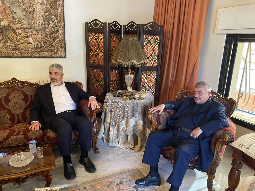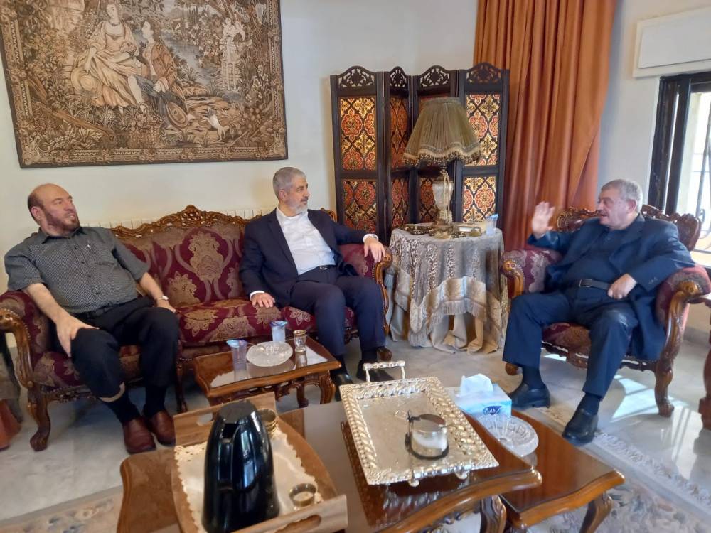 و كان برفقة مشعل عدد من قيادات حركة حماس و كان في استقبالهم الزميل راكان المجالي و انجاله غيث و سنان و مصعب ،  و تناول الحديث على هامش الزيارة تبادل وجهات النظر حول كافة الأمور المتصلة بالقضية الفلسطينية والعلاقة على كافة المستويات بين الاردن و حماس.