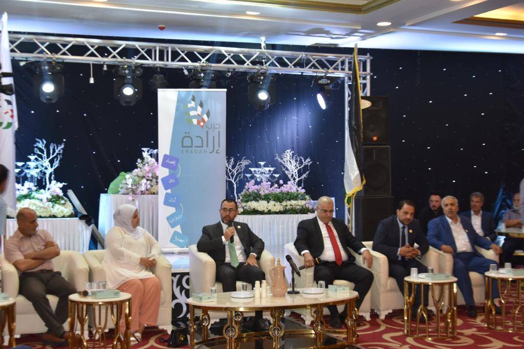 وتم خلال اللقاء عقد خمس جلسات حوارية للأعضاء المؤسسين أدار كل جلسة من الجلسات الأعضاء المؤسسين في إرادة: النائب زيد العتوم، النائب محمد الظهراوي، الشيخ منور الكعيبر السرحان، النائب السابق محمود الطيطي والدكتور محمد سالم العتوم، وشارك في الجلسات الحوارية كل من المؤسسين، مظهر الشريدة، عبد الله عبيدات، الدكتور فارس سعود القاضي، معاذ مهيدات، ايمان الزعبي،  سبأ مروج، الدكتور أحمد هزاع البطاينة، الدكتور موسى بني خالد،صهيب بني يونس، لما طاشمان، آلاء الرواشده،  خالد الفقيه رئيس بلدية برقش ، نزيه بني مرتضى،  إبراهيم البطاينة نائب رئيس بلدية إربد الكبرى  ، عفاف نظامي، الدكتورة انعام صبيحات، الدكتور حسن النعامنة،  محمد شاكر الطيطي، الدكتور مازن الطويل، سناء شديفات،  ليلاس الدلقموني عضو مجلس محافظة إربد ، محمد المصري، الدكتور عدنان العتوم، ساري العبادي رئيس بلدية معاذ بن جبل،  محمد طه المستريحي رئيس بلدية الرابية في الكورة ، هناء البطاينة.