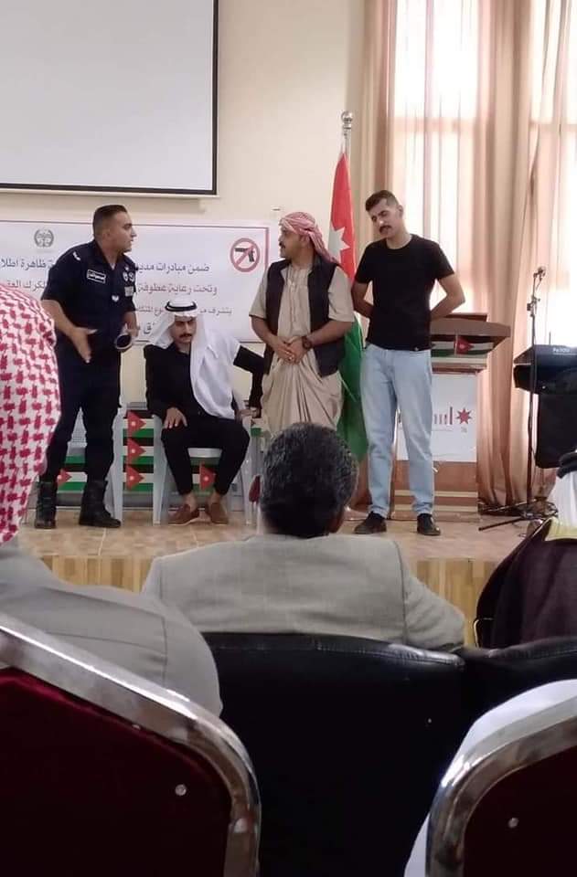 وتضمنت  فعاليات  المبادرة التي شارك بها الصندوق الأردني الهاشمي / مركز الأميرة بسمة في لواء فقوع عرضًا للمسرح الشرطي حول مآسي تلك الظاهرة وآثارها على المجتمع .