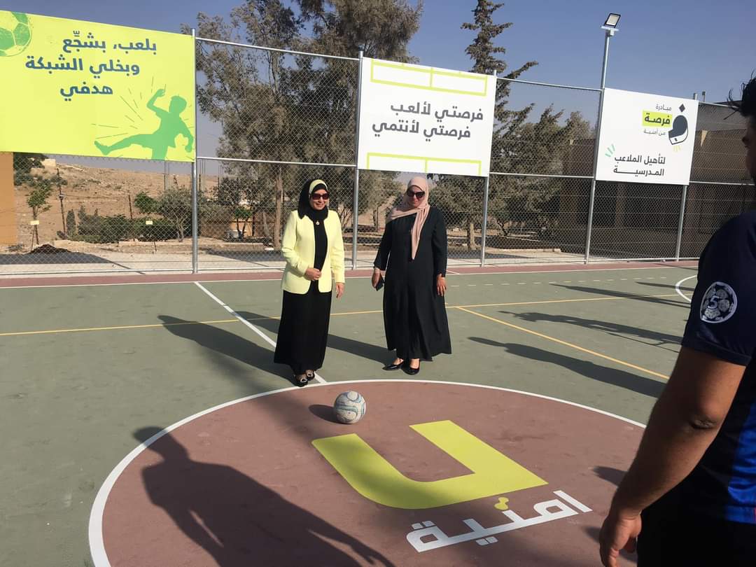 كما قدمت شكرها وتقديرها لشركة أمنية التي عملت على تنفيذ هذا الملعب وقدمت الدعم اللازم لتنفيذ مثل هذه المبادرات ورحبت بفريق مؤسسة ولي العهد السيدة هيا منصور والأستاذ أحمد مرعي وتخلل كلمتها استنهاض لهمم أهالي اللواء وأولياء الأمور ليقوموا بدور الشريك في تنمية المواهب لدى طلبتنا .