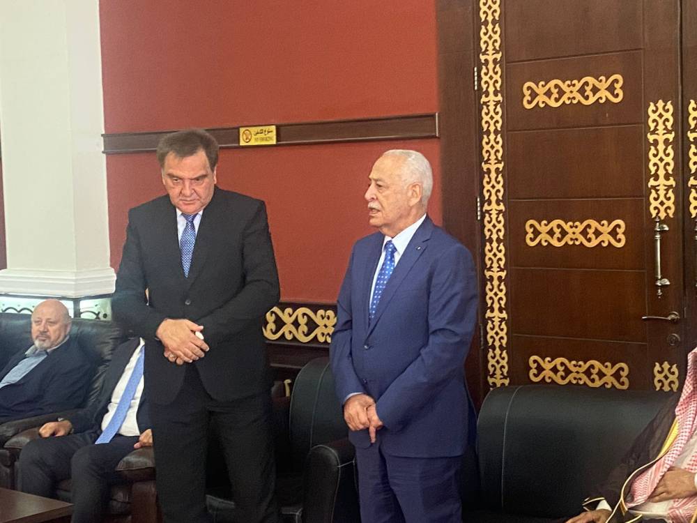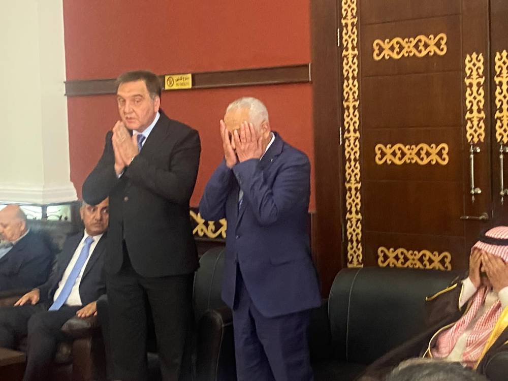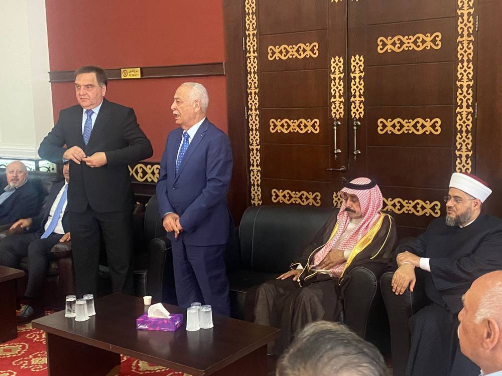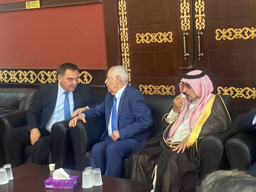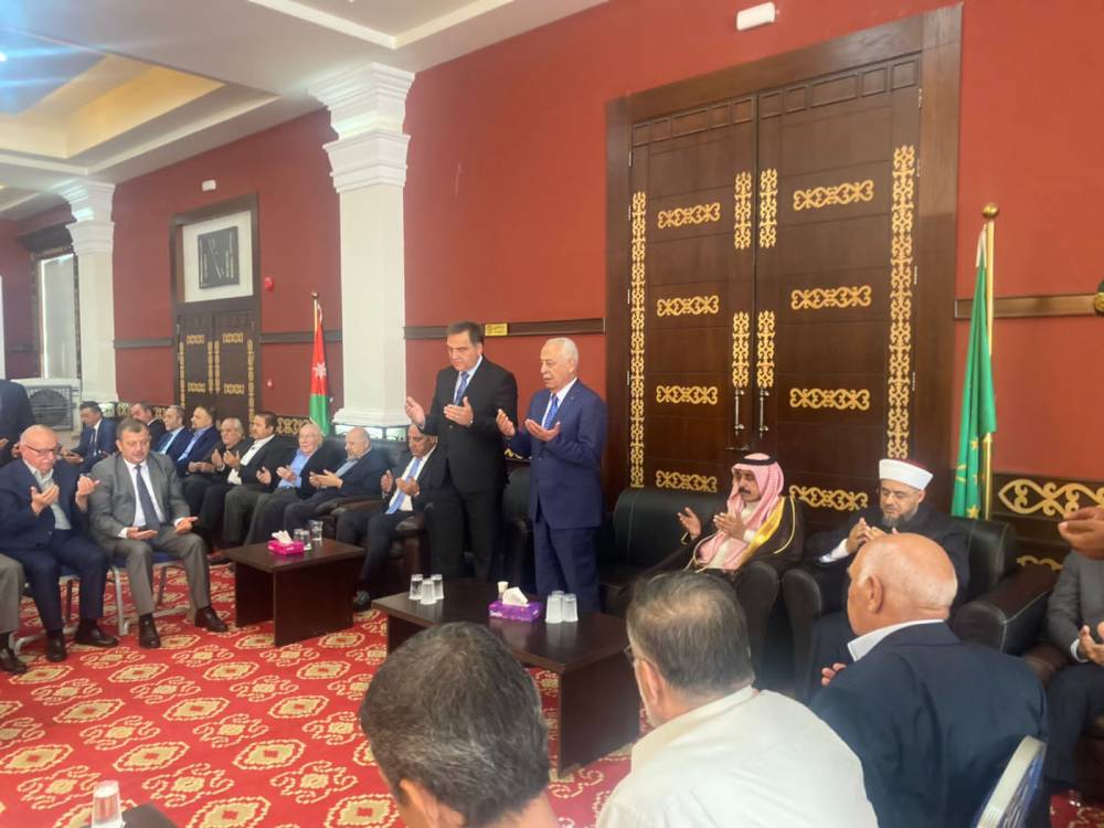 مندوبًا عن جلالة الملك عبد الله الثاني بن الحسين المعظم حفظه الله ورعاه قدم معالي رئيس الديوان الملكي الهاشمي السيد يوسف حسن العيسوي يرافقه مستشار جلالة الملك لشؤون العشائر الدكتور عاطف الحجايا واجب العزاء لعشائر الشركس بوفاة سعادة العين سمير قردن .