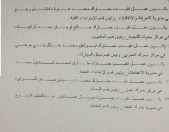 وشملت التشكيلات التدوير الوظيفي لرتبة مقدم ورائد ونقيب وعريف في دوائر والمراكز الحدودية التابعة لها.