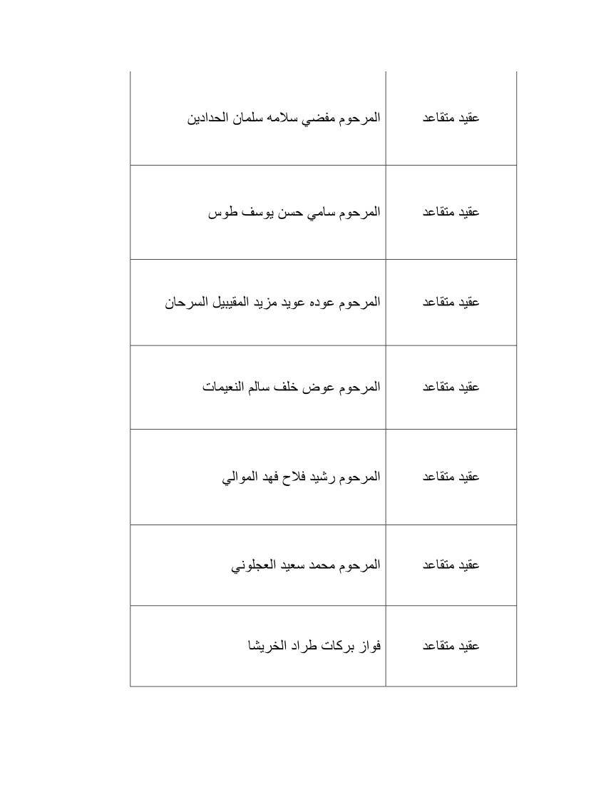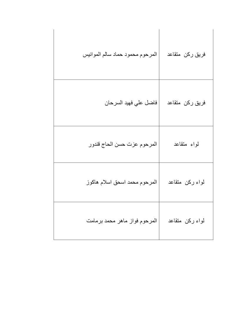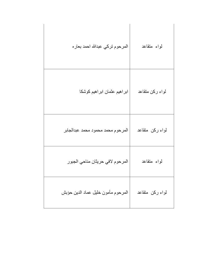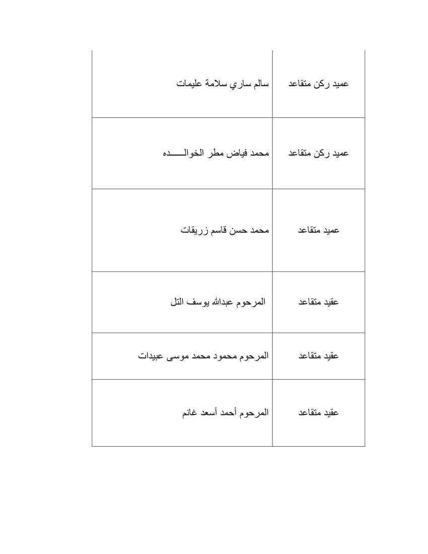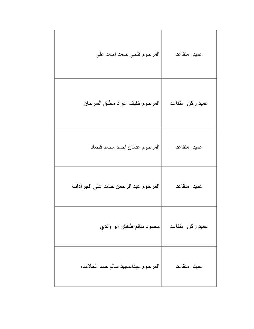 وقال رئيس هيئة الأركان المشتركة اللواء الركن يوسف أحمد الحنيطي، في كلمة خلال حفل التكريم، إن المتقاعدين العسكريين والمحاربين القدامى نماذج خالدة مشرّفة في خدمة وطنهم وأمتهم، حملوا على أكتافهم أمانة المسؤولية وبذلوا الغالي والنفيس في سبيل رفعة الوطن ونهضته، ولا يزالوا يقدمون أقصى ما لديهم.