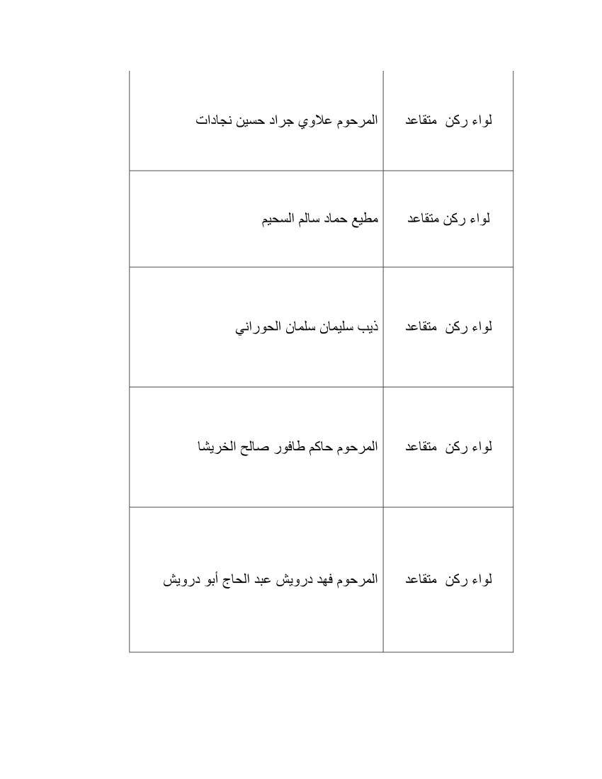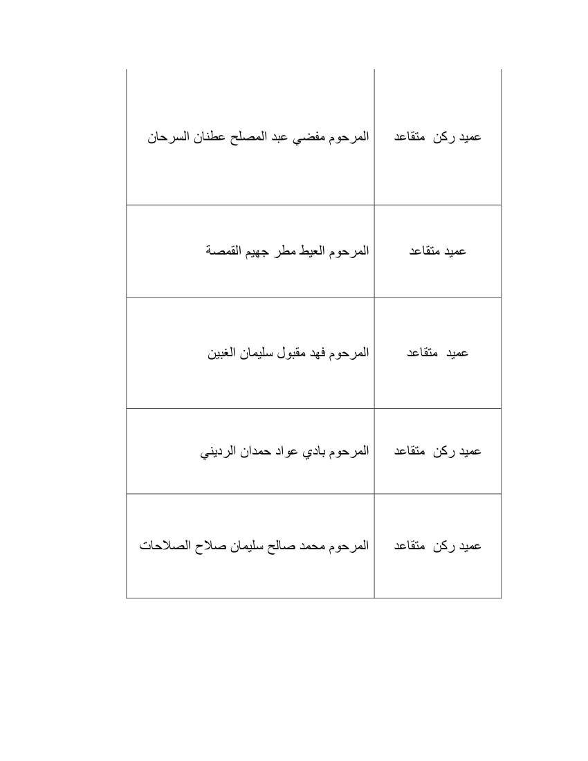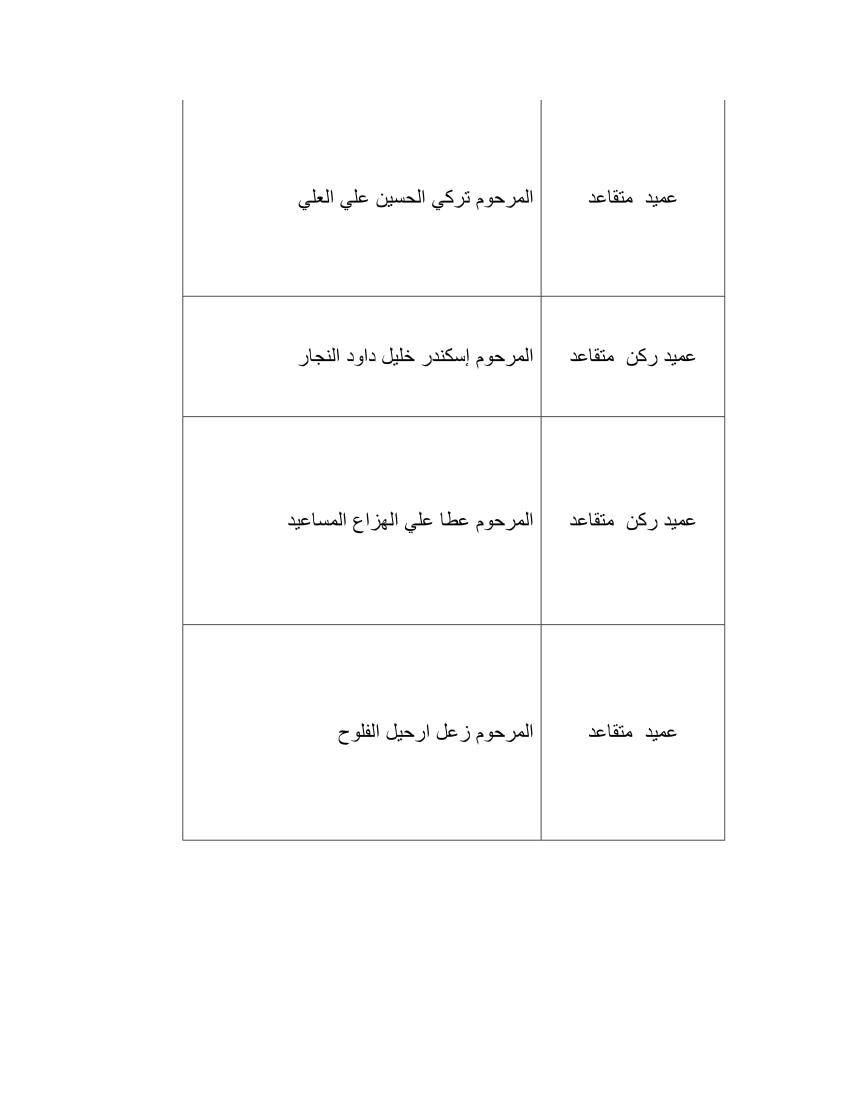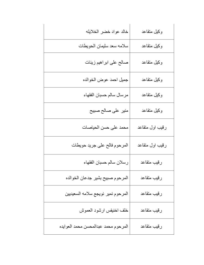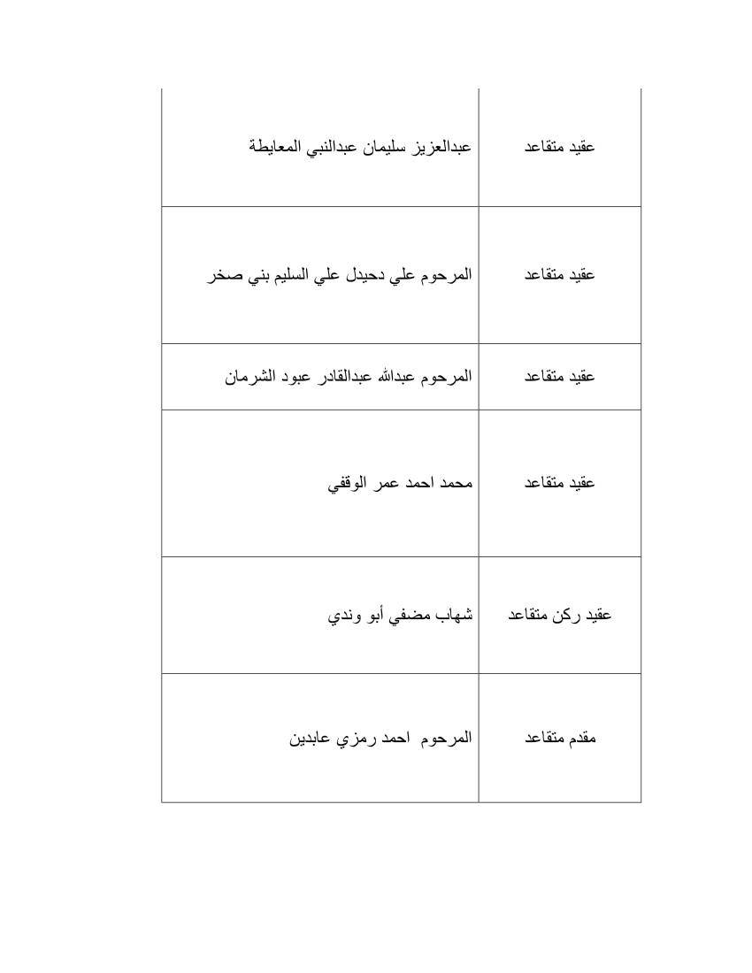 واعتبر اللواء الركن الحنيطي أن المتقاعدين العسكريين ثروة وطنية تتوحد بقسم وعهد الجندية، مؤكدا أن جهودهم وأداءهم وكفاءتهم العالية وخبراتهم المتراكمة ساهمت بشكل فاعل في النهوض بتنمية المجتمع.