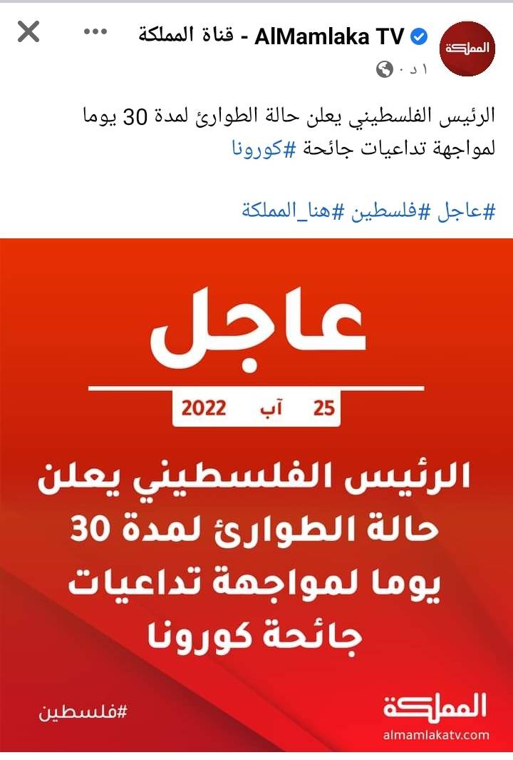 وفقًا بما أعلنته قناة المملكة ، أعلن الرئيس الفلسطيني
