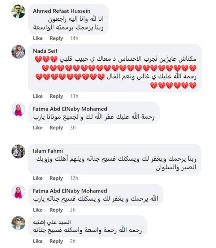 فكتب خلال الشهر الجاري منشورًا نعى خلاله زوج شقيقته: "إلى رحمة الله أيها الحبيب الغالي، زوج أختي الأستاذ الشحات محفوظ في ذمة الله".