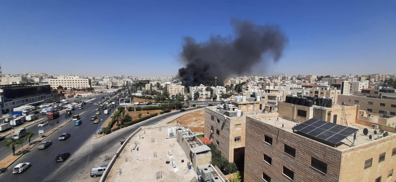 شب حريق ضخم، صباح الأحد، داخل أحد المباني المهجورة بالقرب من شارع الإذاعة والتلفزيون في العاصمة عمان