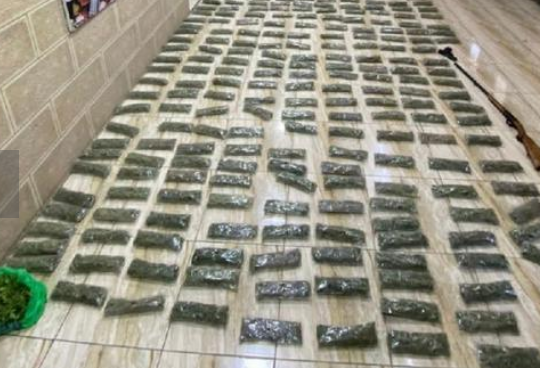 وجرى بعد التأكد من المعلومات مداهمة المزرعة والقاء القبض على الاب وأبنائه الثلاثة وضُبط داخل المزرعة 500 كيس بلاستيكي تحتوي على مادة الماريجوانا المخدرة اضافة إلى ضبط 300 شتلة من ذات النبتة وسلاح ناري .