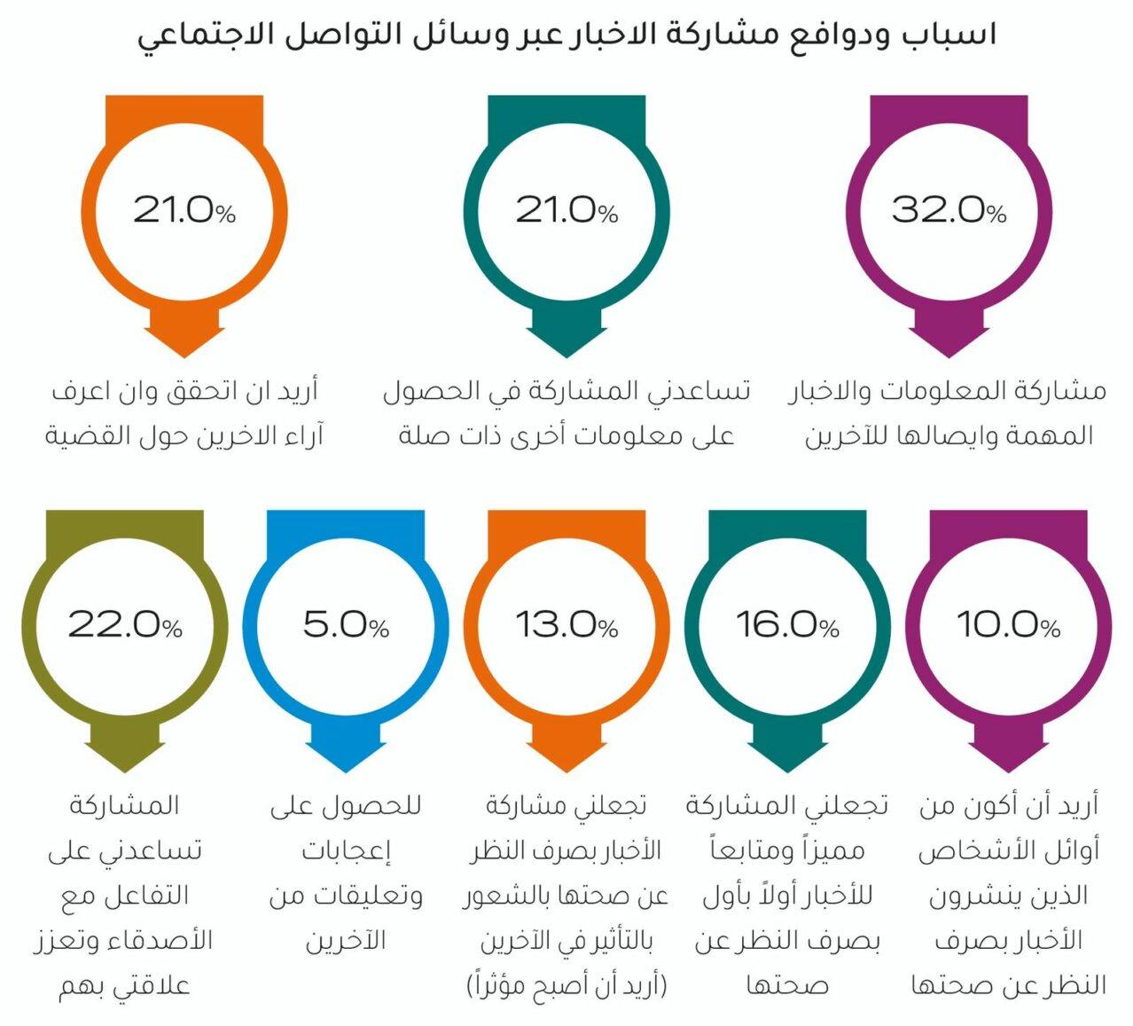وحول أسباب ودوافع نشر المستجيبين للأخبار، فقد تبيّن أن 32% من الأردنيين والأردنيات يقومون بالنشر لمشاركة المعلومات والأخبار الهامة مع الآخرين، فيما قال 21% إنهم ينشرون الأخبار لأنها تساعدهم في الحصول على معلومات ذات صلة بالخبر، ووصلت نسبة الذين ينشرون ويشاركون الأخبار على حساباتهم بسبب رغبتهم في التحقّق والتعرف على آراء الآخرين إلى 21%، بينما قال 10% إنهم ينشرون الأخبار بهدف أن يكونوا من أوائل الأشخاص الذين ينشرونها بغض النظر عن صحتها، فيما قال 16% إنهم ينشرون الأخبار حتى يشعروا بالتميّز عن غيرهم بغض النظر عن صحتها، بينا بلغت نسبة من ينشرون الأخبار لشعورهم بأهمية التأثير في الآخرين 13%. فيما قال 5% إنهم ينشرون الأخبار بهدف الحصول على إعجابات وتعليقات من الآخرين، بينما 22% قال إن المشاركة تساعدهم على التفاعل مع الأصدقاء وتعزّز علاقته بهم.