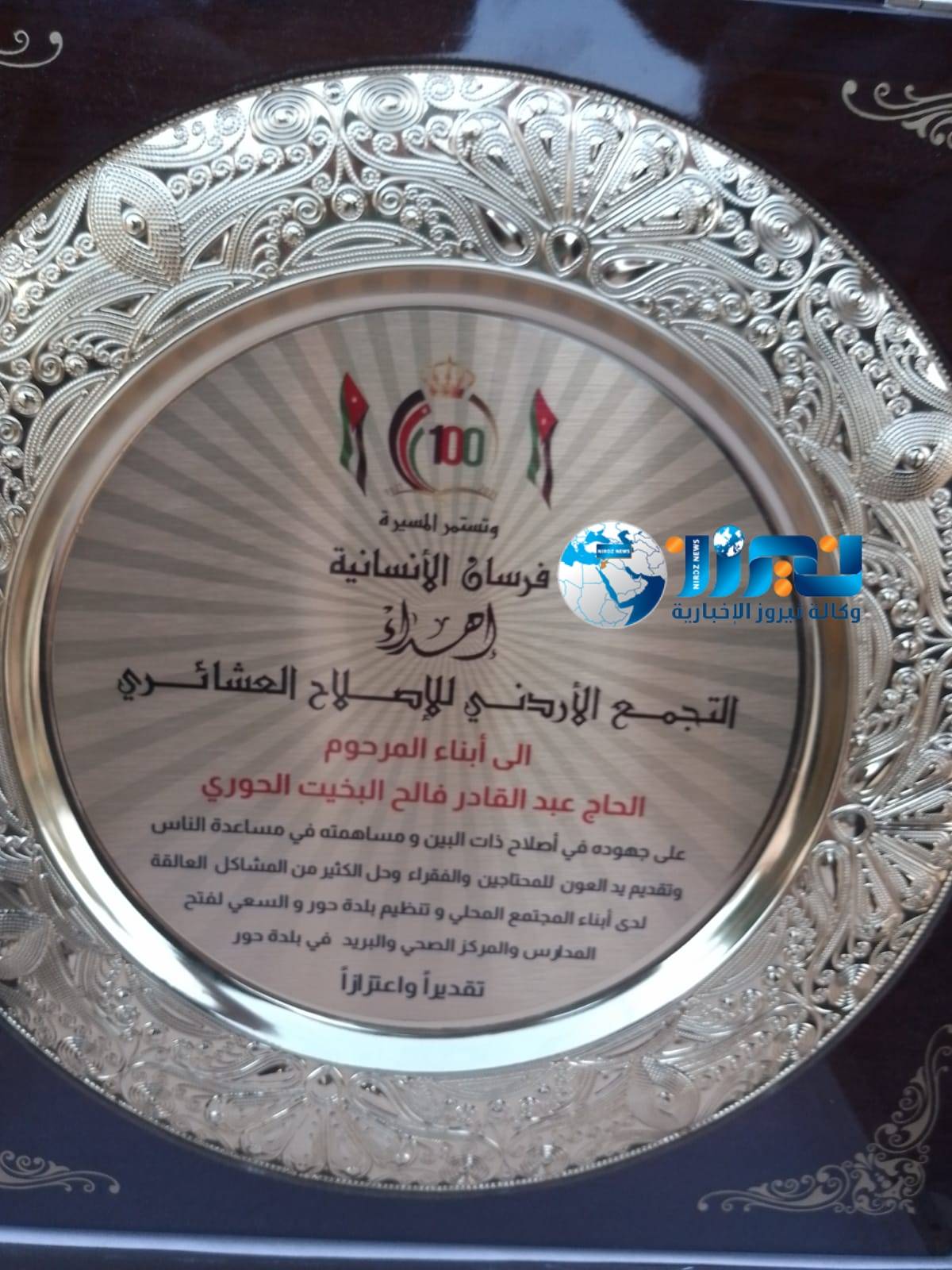 قدم رئيس التجمع الاردني للإصلاح العشائري العين الأسبق   الفريق الركن المتقاعد غازي الطيب أمس الثلاثاء درع فرسان الإنسانية لأبناء الحاج عبد القادر فالح البخيت الحوري و   ذلك تقديرًا واعتزازًا على  جهوده حينما كان على قيد الحياة  في أصلاح ذات البين ومساهمته في مساعدة الناس وتقديم يد العون للمحتاجين والفقراء وحل الكثير من المشاكل العالقة  لدى أبناء المجتمع المحلي وتنظيم بلدة حور والسعي لفتح المدارس والمركز الصحي والبريد في بلدة حور .