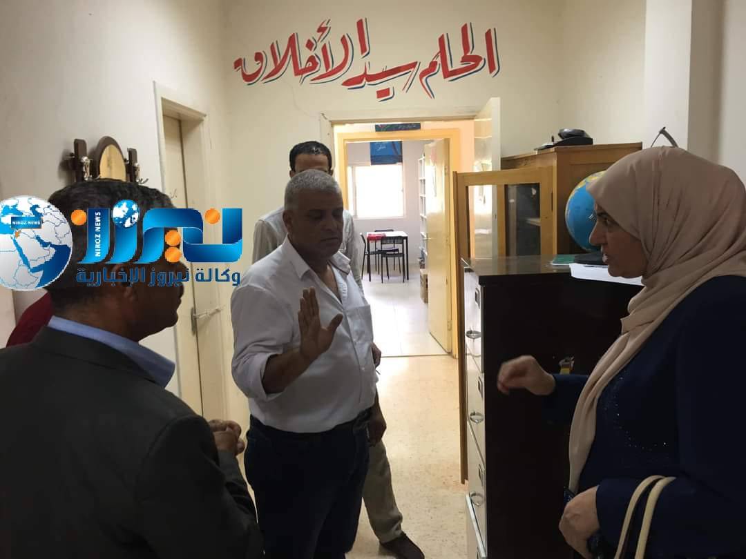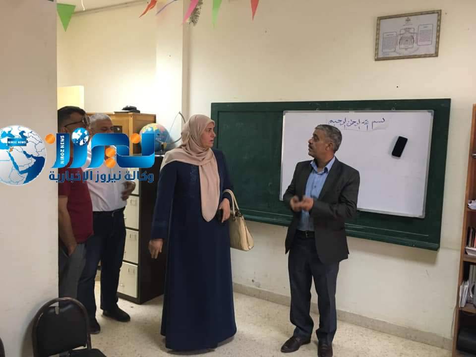 وجاءت هذه الزيارة للوقوف على الواقع التربوي من نواحيه كافة منذ اليوم الدراسي الأول حيث التقت بمديري ومديرات المدراس والحديث معهم حول التجهيزات الهامة للعملية التعليمية من كتب مدرسية وأثاث وقرطاسية وأعداد طلبة واكتمال الهيئات التعليمية.
