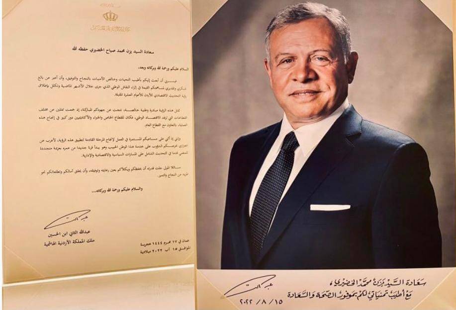الملك يكرم مساعد مدير عام هيئة تنشيط السياحة مسؤول برنامج اردننا جنة " الخضيري " .