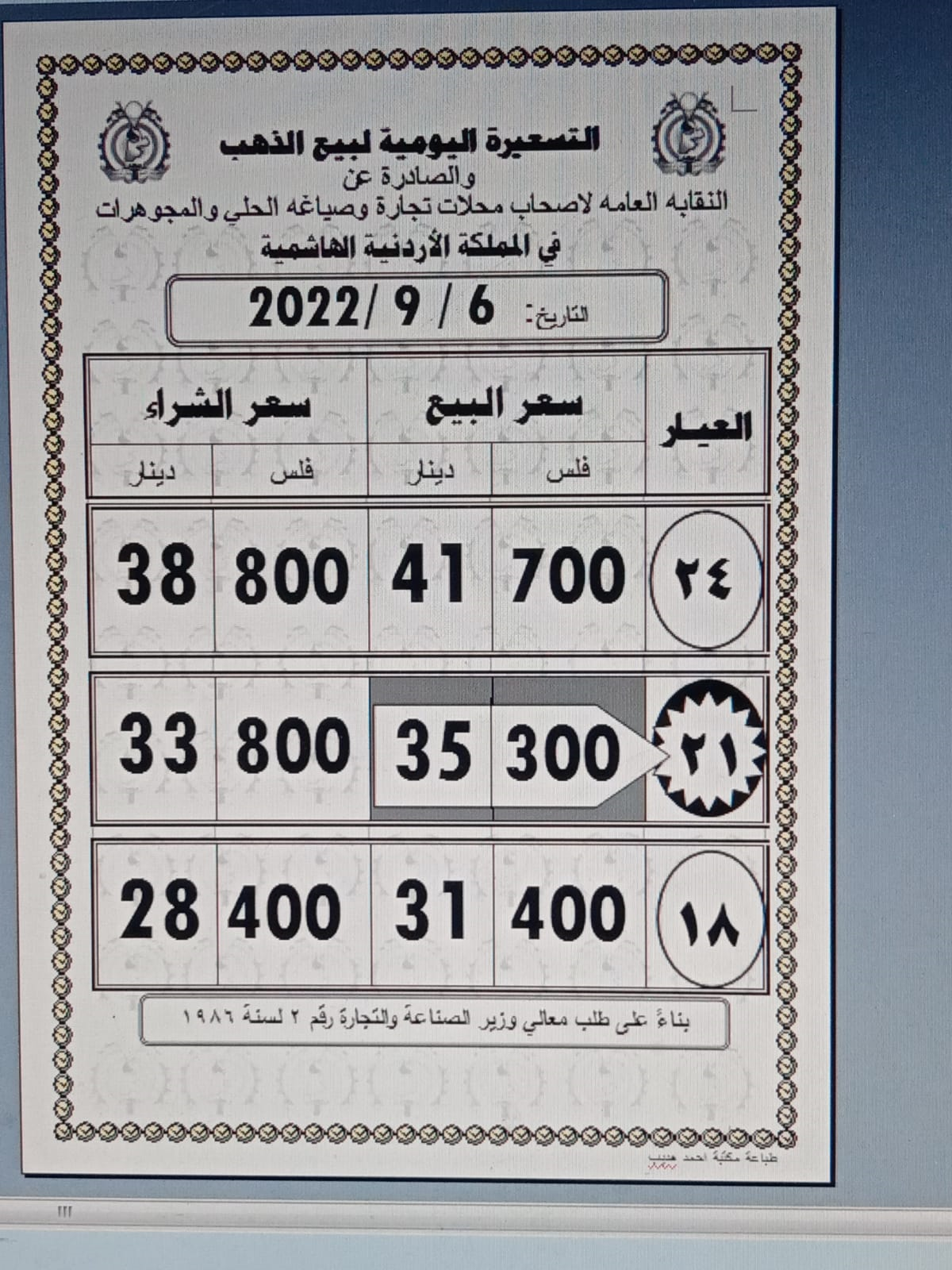 ووفق نقابة أصحاب محلات تجارة وصياغة الحلي والمجوهرات، فقد بلغ سعر بيع غرام الذهب عيار 21 الأكثر رغبة بين الأردنيين بالسوق المحلية عند 35.30 دينارا لغايات شراء المواطنين.