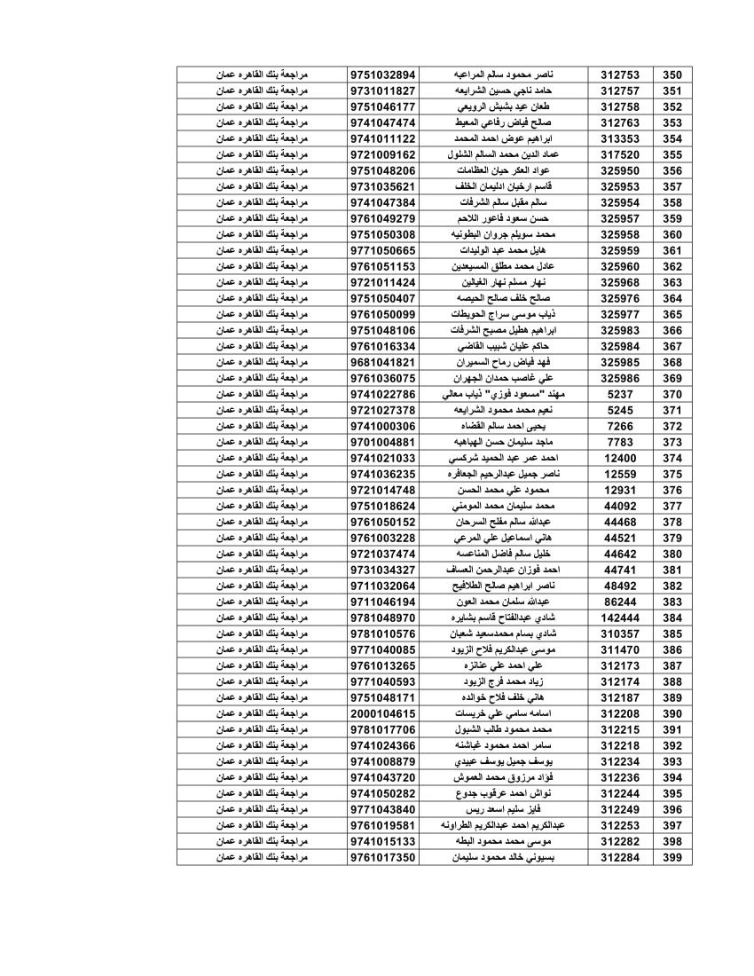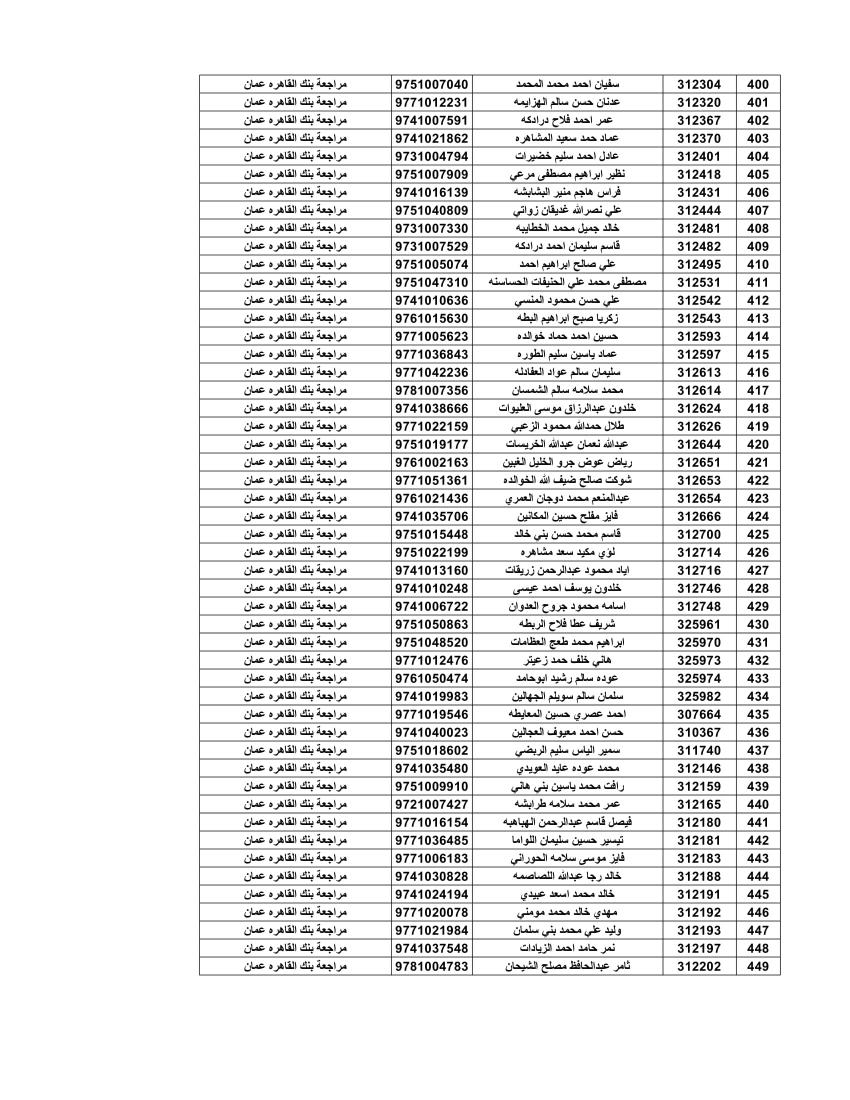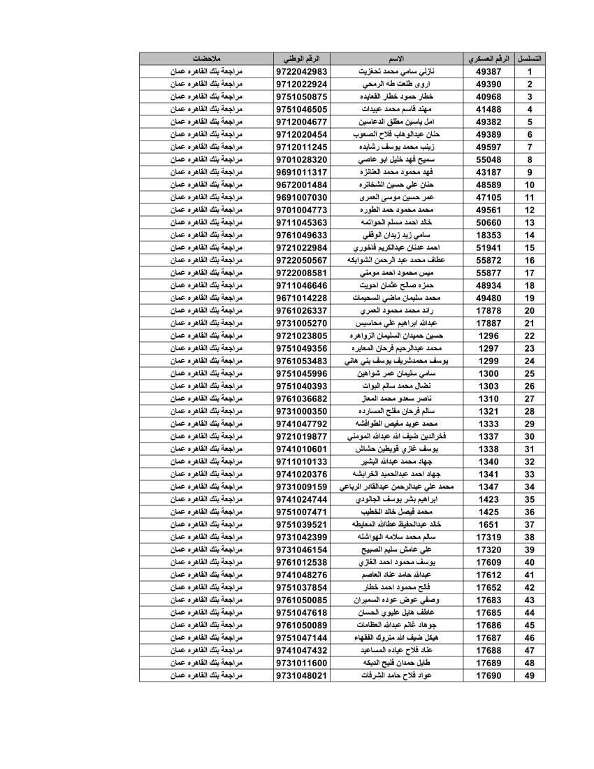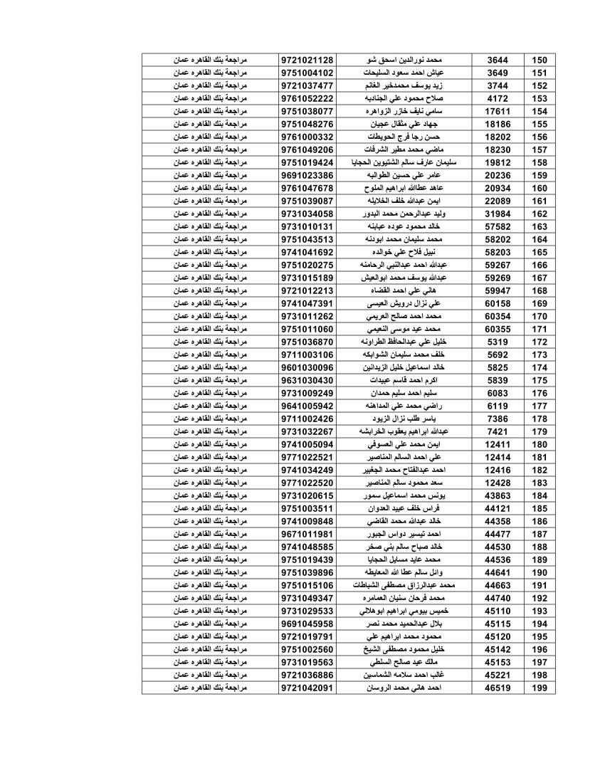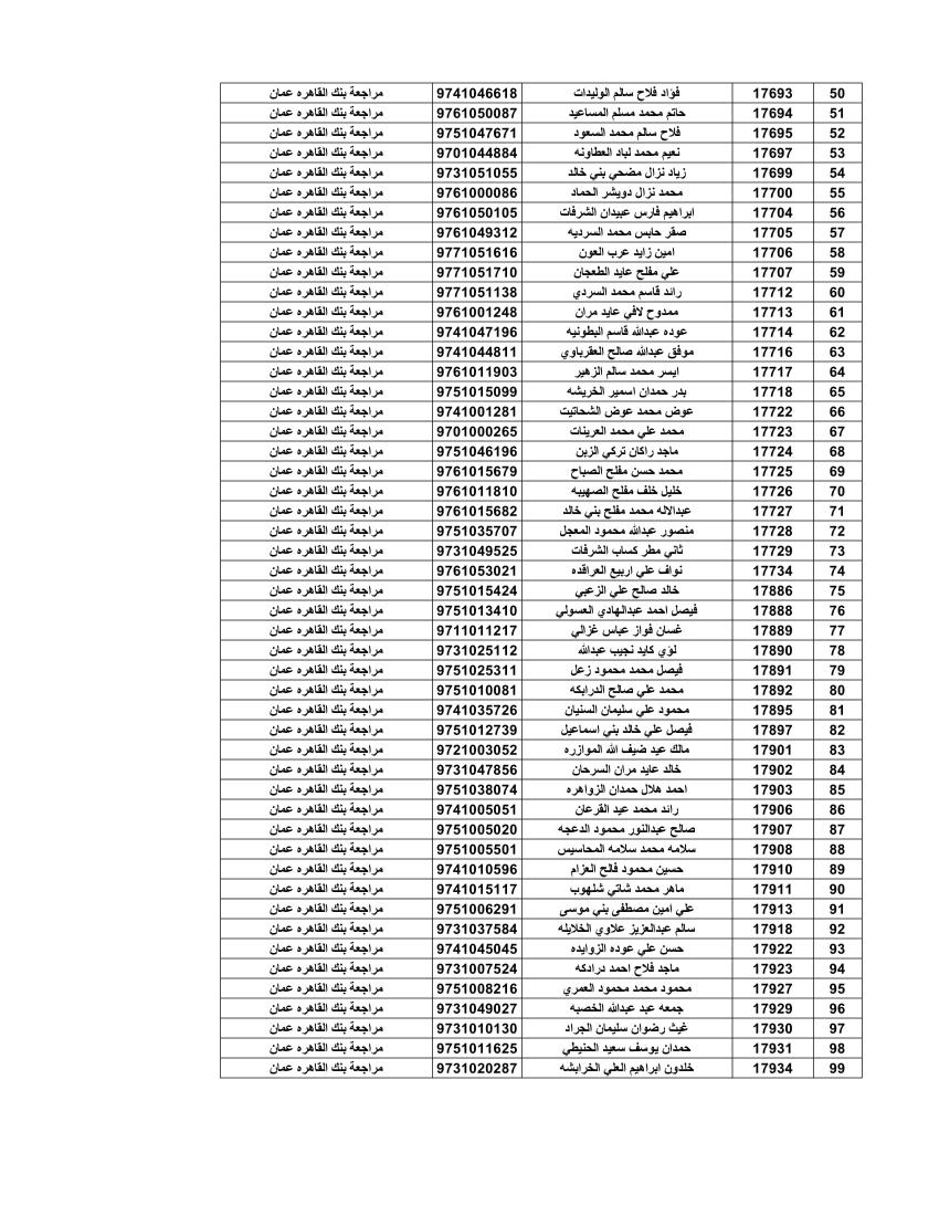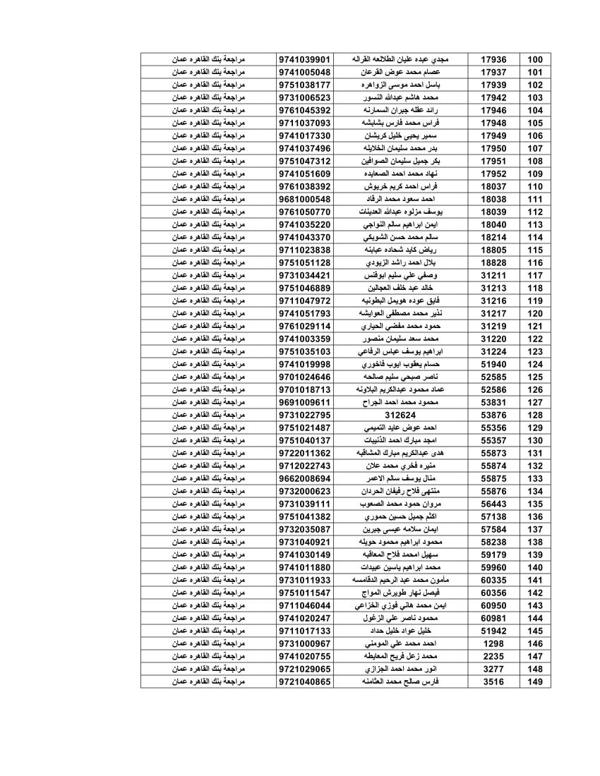 ودعت المستفيدين مراجعة بنك القاهرة عمان وكافة فروعه اعتباراً من صباح يوم الأربعاء 7/9/2022 لاستلام قيمة القرض.