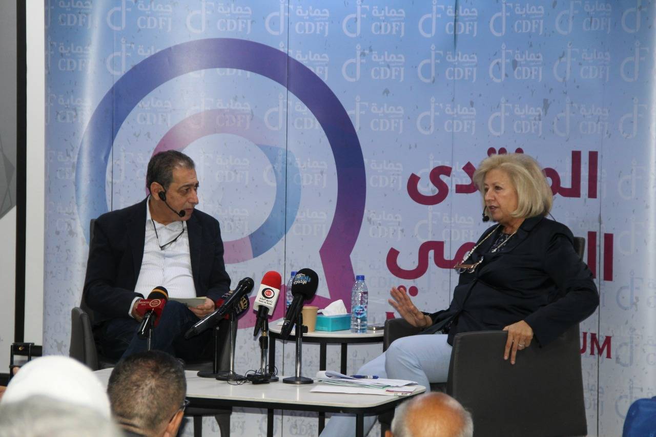 وفي الحوار الذي أداره مؤسس مركز حماية وحرية الصحفيين، نضال منصور، وتعقيبا على سؤال متعلق بمهرجان جرش، أكدت النجار على أن مهرجان جرش يمثل تاريخا ثقافيا أردنيا، موضحة أن هناك قرارا وطنيا من أعلى المستويات في الدولة الأردنية بضرورة استمرار مهرجان جرش، وتطويره ليكون من الأفضل عربيا، ودوليا، وضمان أن يكون منصة لإطلاق طاقات الشباب، والمبدعين الأردنيين في مختلف المجالات الثقافية.