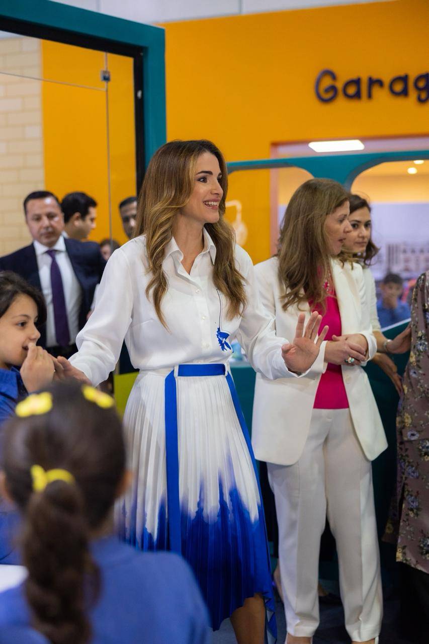 وفي ذات السياق افتتحت جلالتها معروضة "التكنولوجيا والاتصالات” التفاعلية التي تم تنفيذها بدعم من شركة زين الأردن بحضور الرئيس التنفيذي للشركة فهد الجاسم ، واطّلعت على أقسام المعروضة واستمعت لشرح عنها.