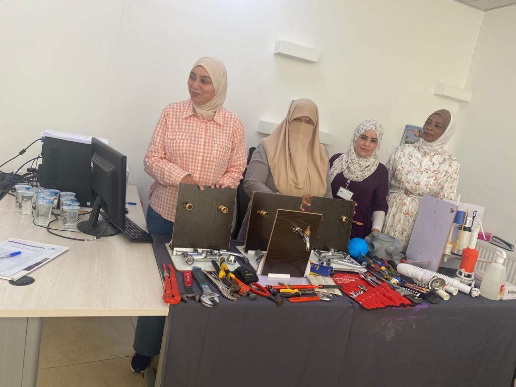 وعلى مدار ايام متتالية من هذا الاسبوع تم عقد دورة "السباكة” في محافظة السلط باشراف السباكة المدربة ايمان العبادي والسيدة تهاني الشطي وبمشاركة عشرون سيدة من المجتمع المحلي اضافة الى عدد من موظفات قطاع المياه في الادارة تلقت فيه المتدربات المشاركات تدريبات على الادوات اللازم توفرها في المنازل لاستعمالها في أعمال السباكة ومهارت كشف حالات التسرب المائي في منازلهم وتعريفهن بأنواع الحنفيات وصيانتها وقطع توفير المياه وتنظيف مرافق الصرف الصحي للحد من فاقد المياه وخفض قيمة فاتورة المياه و العمل على تنظيف خزانات المياه لضمان تزويد مائي امن اضافة الى توزيع عدد من المواد التوعوية التي تسهم في رفع درجة الوعي المائي لدى المواطنين .