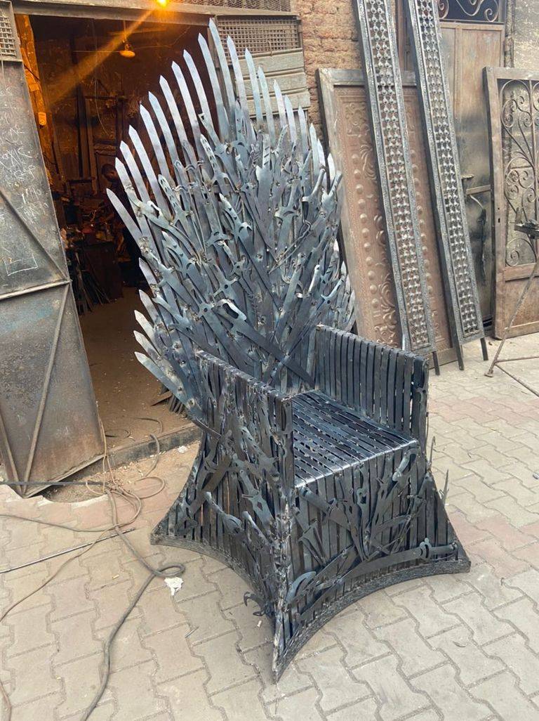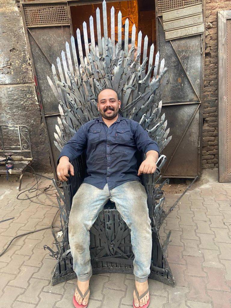 بمهارة عالية، نجح حداد مصري في صنع كرسي "العرش الحديدي" الذي ظهر في مسلسل "Game of Thrones" الشهير.