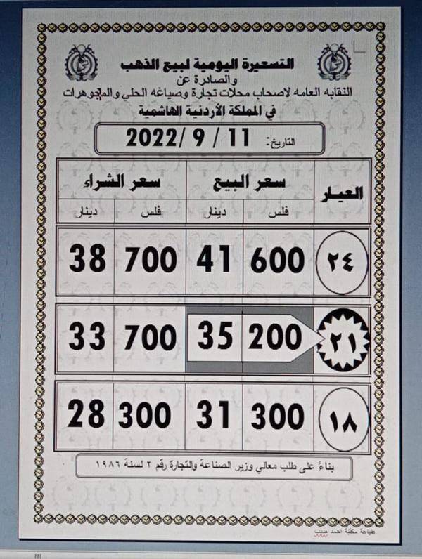 أسعار الذهب في الأردن الأحد