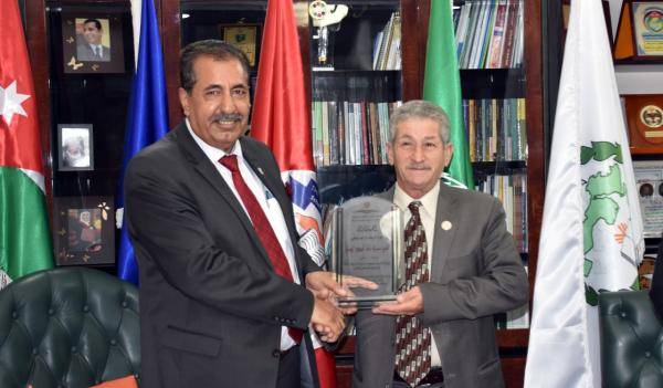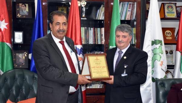 وفي نهاية الإحتفال قدم العزام درع الجمعية للدكتور المراشدة.