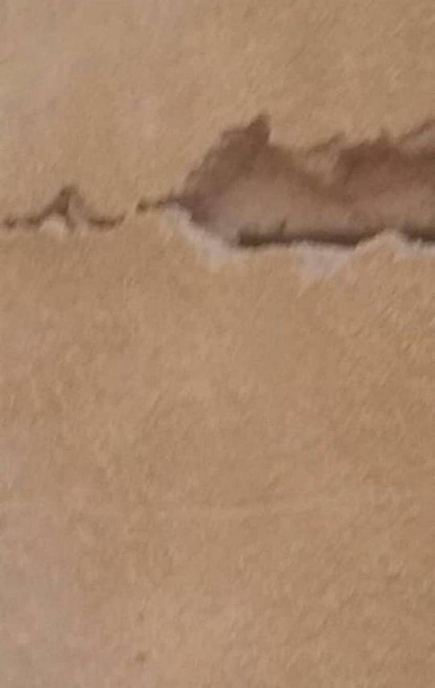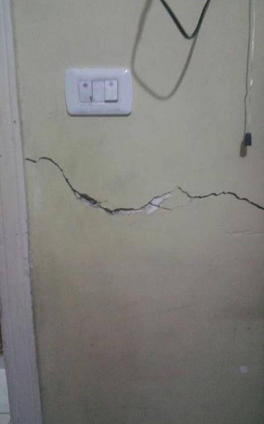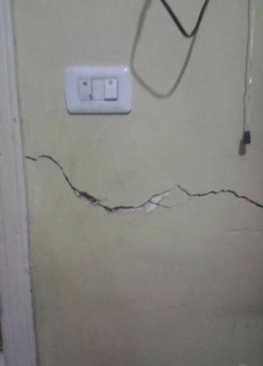 وتاليا الصور التي توضح وجود تشققات في الجدران والأدراج في سكن كريم بسحاب، بحسب الخوالدة