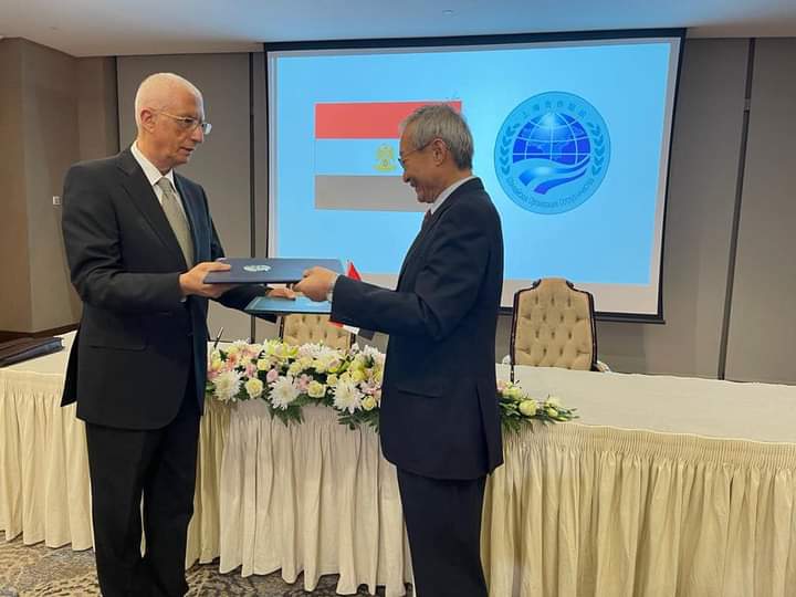 قام السفير/ حمدي سند لوزا نائب وزير الخارجية للشئون الإفريقية بالتوقيع على مذكرة التفاهم ممثلاً لجمهورية مصر العربية ووقع عن جانب منظمة شنغهاي للتعاون السيد/ تشانج مينج أمين عام المنظمة.