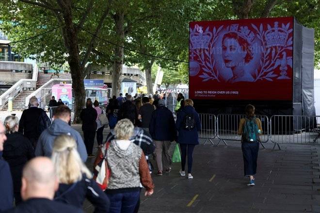 وقالت "في هذا المكان لا يمكن تجاهل الحضور الطاغي الذي كانت تتميز به. غلبتني المشاعر ولم أكن الوحيدة"، مع بزوغ فجر الخميس كان الطابور بطول 3,2 كلم على امتداد الضفة الجنوبية لنهر تيمس. ويتوقع أن يستمر الانتظار لساعات عدة، أعد المنظمون بنى تحتية لطوابير انتظار بطول 16 كلم، وسط توقعات بأن يتوافد مئات الآلاف لإلقاء نظرة على نعش الملكة.