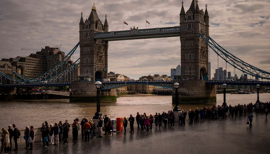 حشود بالقرب من جسر لندن لوداع الملكة اليزابيث -صورة