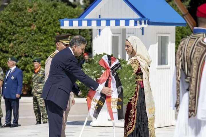 شارك السفير عمر عامر، سفير جمهورية مصر العربية لدى اليونان مع ملحق الدفاع المصرى بالسفارة، في الاحتفال السنوي لتخليد ذكرى الجندي المجهول، حيث قام السفير المصرى بوضع إكليل من الزهور يحمل علم مصر على النصب التذكاري للجندي المجهول.