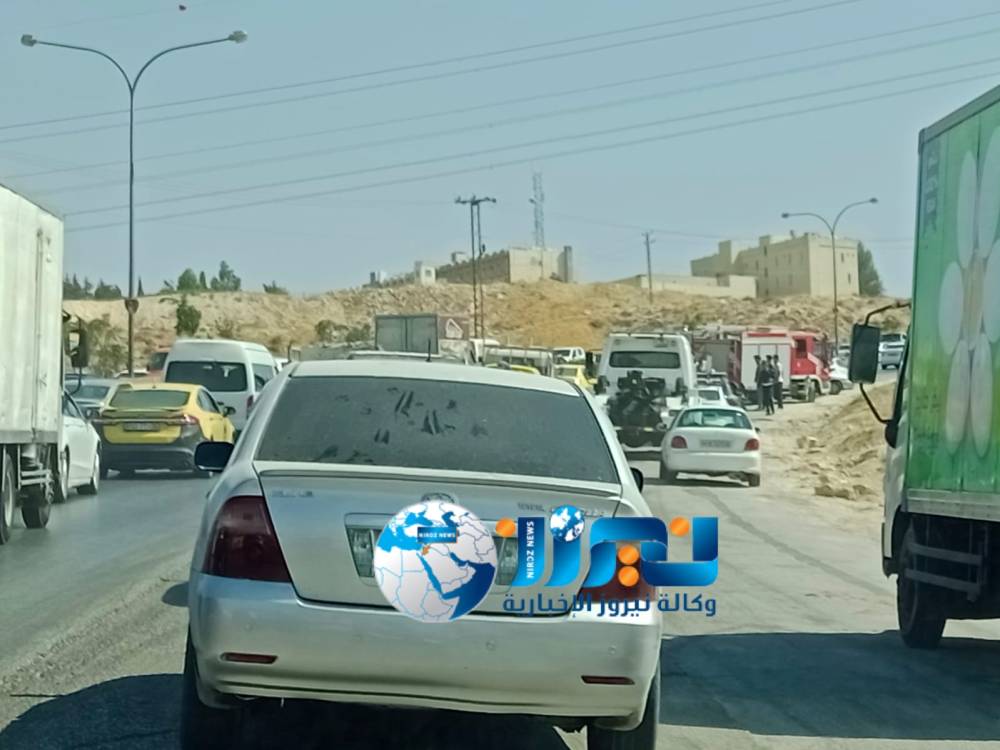رصدت نيروز بعدستها الثلاثاء أزمة سير خانقة على شارع الاردن بسبب حادث انقلاب مركبة .