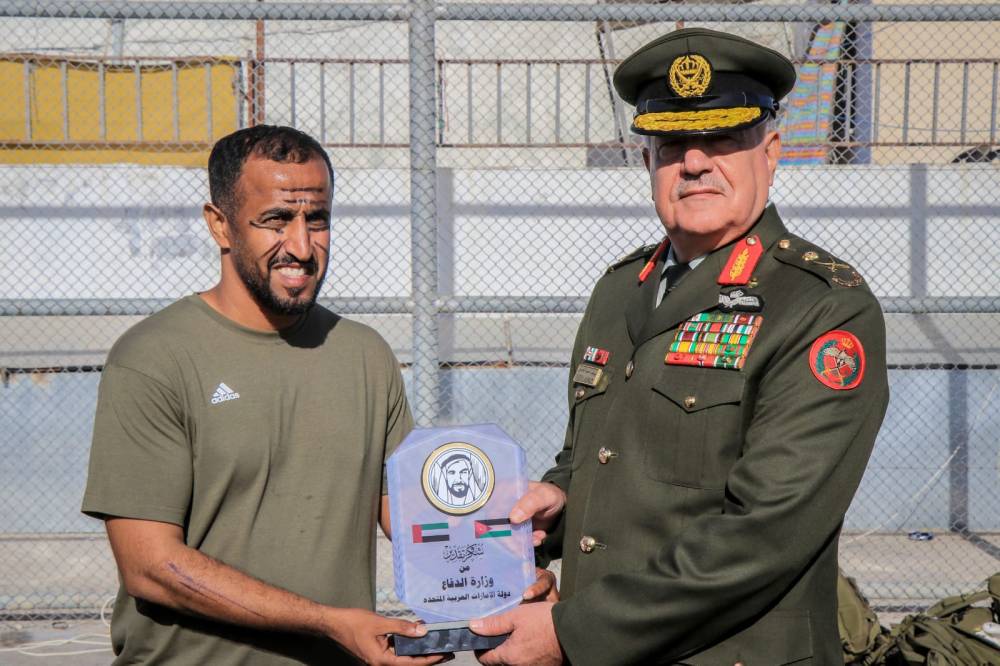 وفي نهاية التخريج سلّم اللواء الركن الحنيطي درعاً للمشارك من دولة الإمارات العربية الشقيقة، كما سلّم مدير الاتحاد الرياضي العسكري الشهادات على الخريجين.