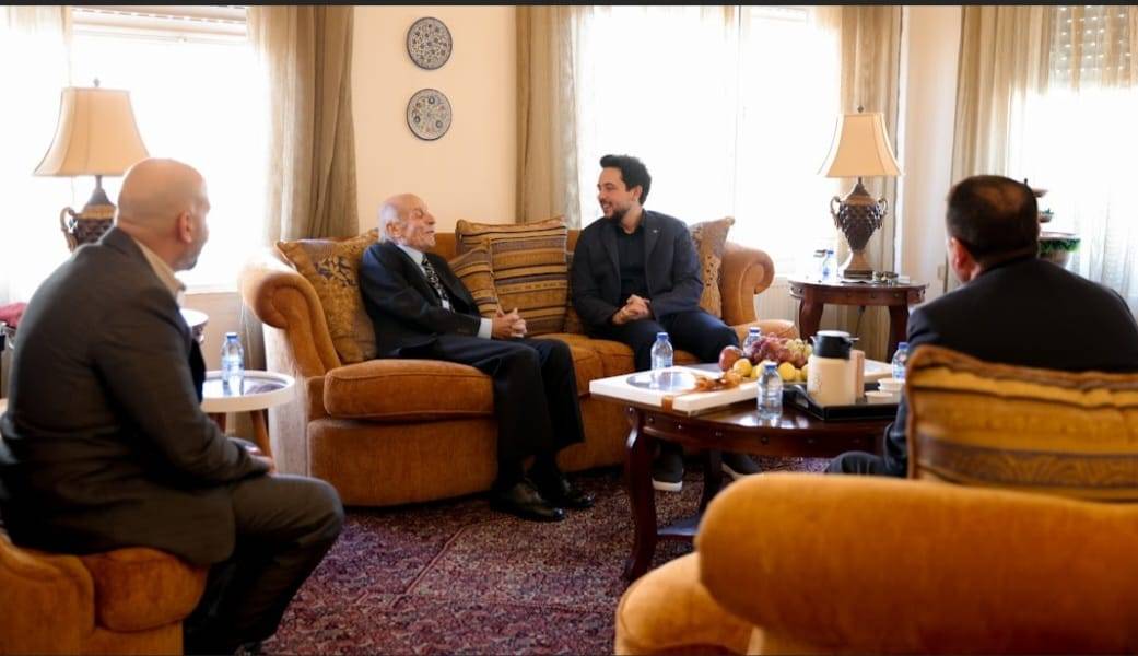 زار سمو الأمير الحسين بن عبدالله الثاني، ولي العهد، اليوم الإثنين، الإعلامي والأديب غالب الحديدي في منزله.