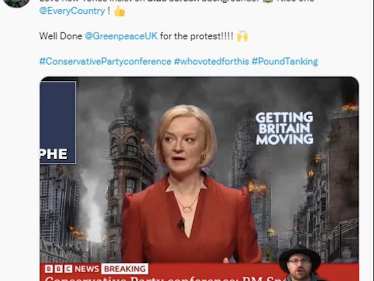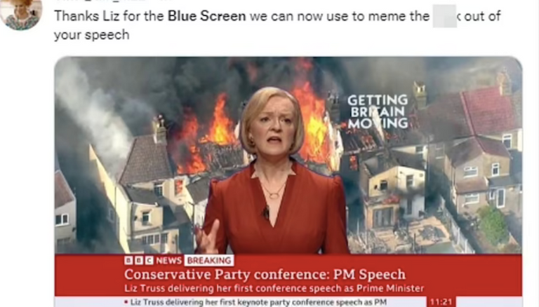 ودخل مصممو الجرافيك في حزب العمال على خط التهكم على موقع "تويتر"ـ إذ علقوا على مقطع فيديو جامع: "نصيحة سياسية ... لا تقف أمام شاشة زرقاء إذا كنت في منتصف انهيار البلاد".