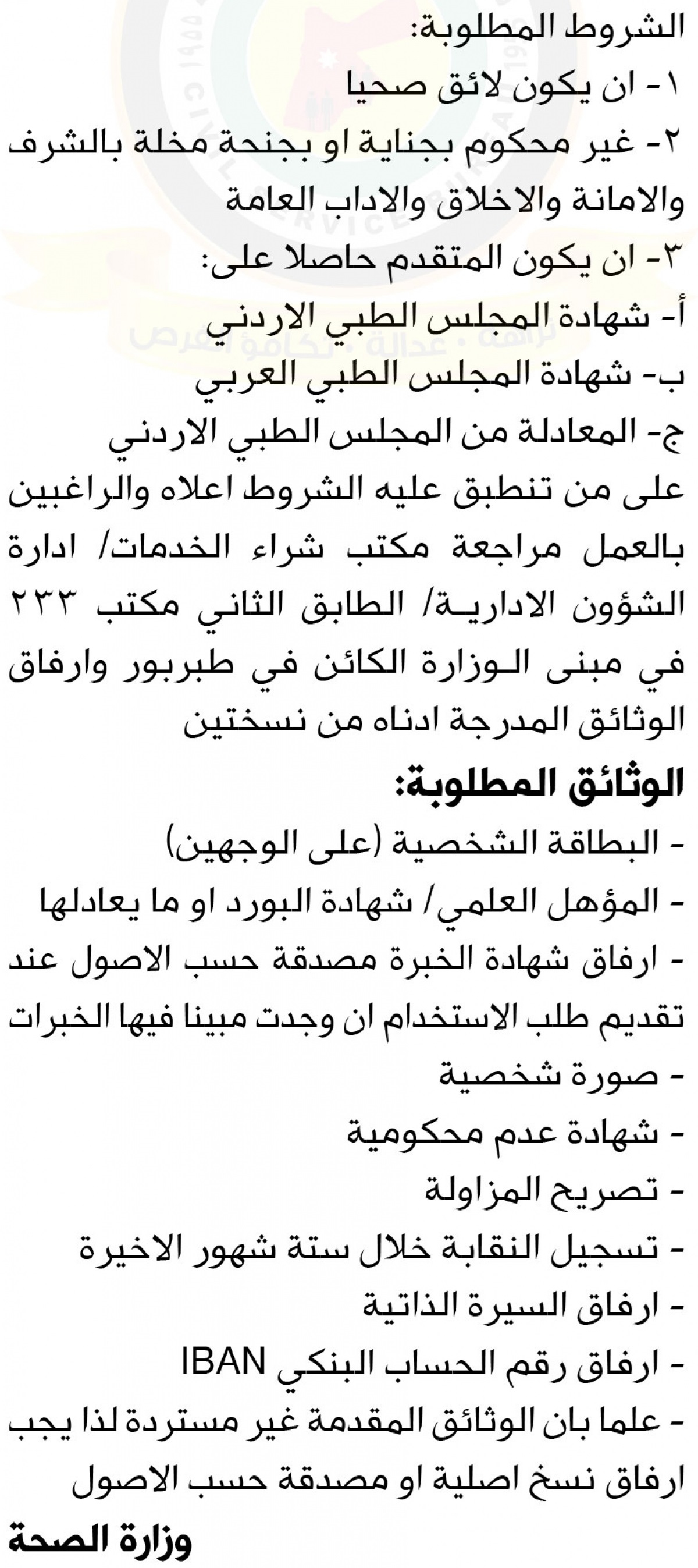 نيروز الإخبارية : أعلنت وزارة الصحة، بالتعاون مع ديوان الخدمة المدنية، عن حاجتها لشراء خدمات عدد من أطباء الاختصاص، للعمل في عدد من المستشفيات.
