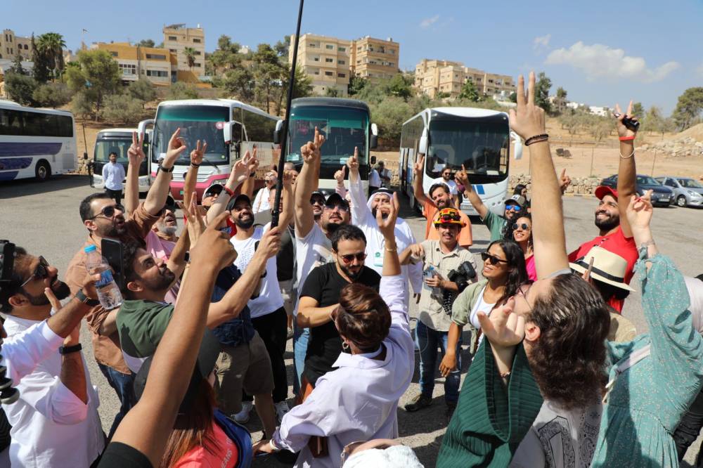 جانب من زيارة لعدد من المؤثرين لموقع جرش بترتيب من هيئة تنشيط السياحة بهدف ترويج الموقع سياحيا من خلال وسائل التواصل الاجتماعي