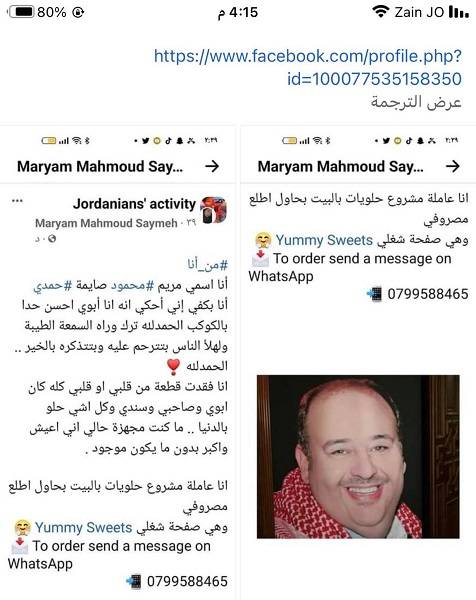 تواجه الفتاة مريم، ابنة الفنان الأردني الراحل محمود صايمة ( حمدي ) متاعب الحياة لتعيل اسرتها ببيع الحلويات، في ظل تدني راتب والدها التقاعدي والبالغ 80 دينارا.
