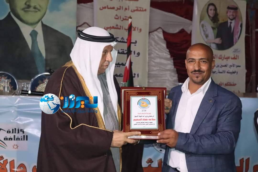 ولدى نهاية المهرجان كرم رئيس بلدية ام الرصاص ،وزير الداخلية الأسبق سلامه حماد بدرعًا تكريميًا لجهوده المتميزة في دعم الثقافة .