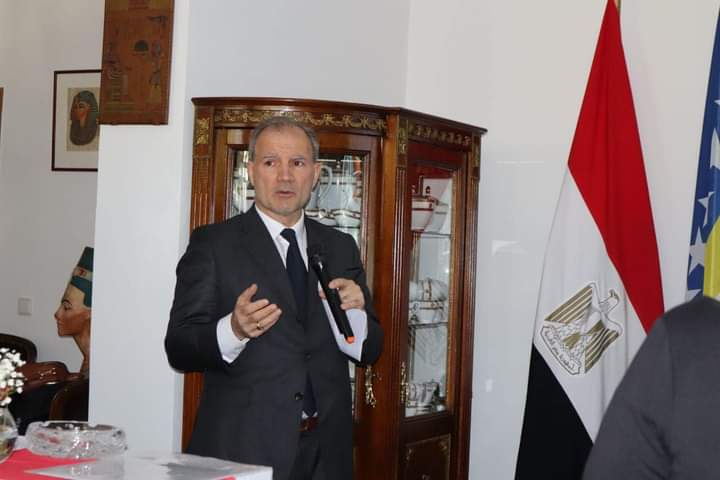 ومن جانبه، القى السفير ياسر سرور، سفير جمهورية مصر العربية في سراييفو، كلمة أشار فيها إلى أن مؤتمر COP27 يهدف إلى التحول من مرحلة التعهدات إلى التنفيذ، مبرزاً ما يشكله المؤتمر من فرصة لمواجهة التهديد الوجودي الذي يفرضه التغير المناخي. كما أكد على الاهتمام الذي يوليه السيد الرئيس عبد الفتاح السيسي لدور الشباب في المؤتمر من خلال تقديم الدعم لعدد 400 مشارك من الشباب للإقامة خلال المؤتمر.