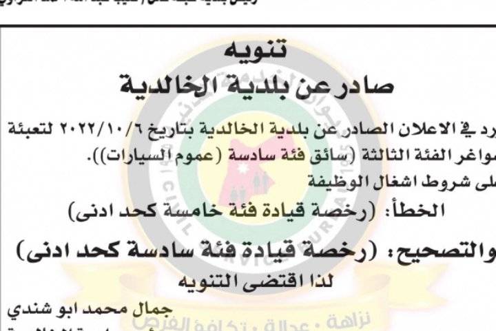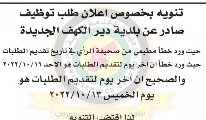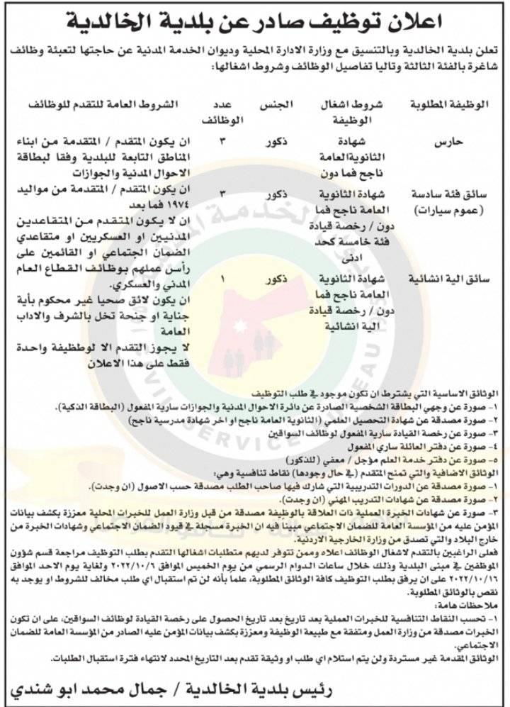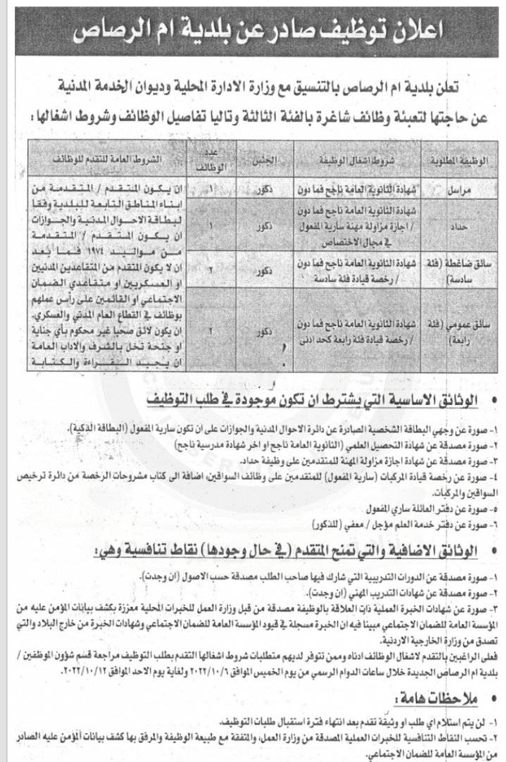 نشر ديوان الخدمة ، مجموعة من الإعلانات الصادرة عن عدة بلديات حول حول حاجتها لملء وظائف شاغرة لديها.