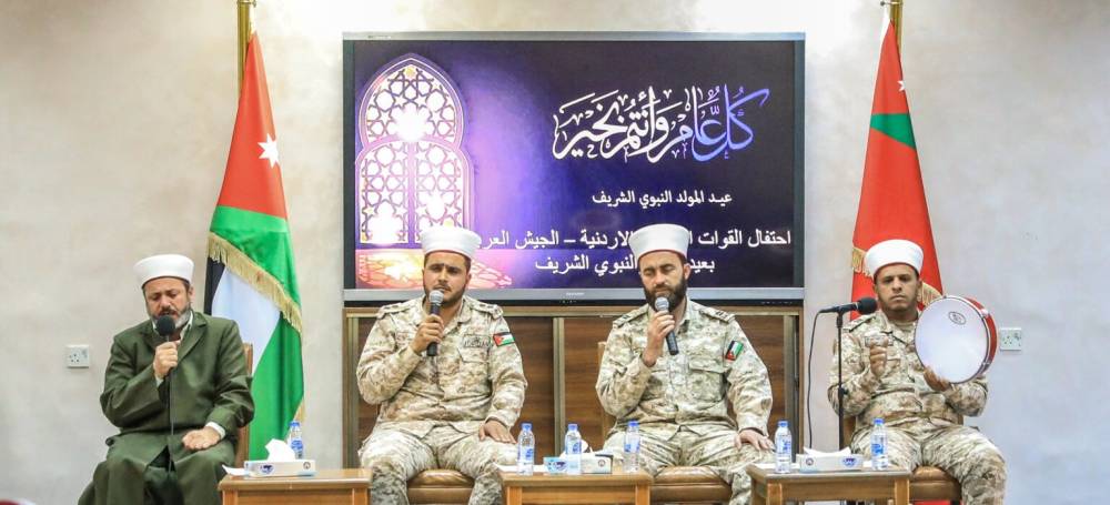 واشتمل الحفل الذي حضره عدد من ضباط وضباط صف وأفراد القوات المسلحة الأردنية – الجيش العربي، على أناشيد دينية ومدائح نبوية أدتها مجموعة من أئمة مديرية الإفتاء العسكري تغنت بذكرى سيد البشرية.