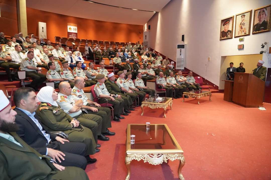 وبدأ الاحتفال بالسلام الملكي من ثم تلاوة آيات عطرة من الذكر الحكيم، وألقى بعدها مفتي القوات المسلحة العقيد إمام حسن المخاترة كلمةً قال فيها: "لقد دأبت القوات المسلحة الأردنية - الجيش العربي المصطفوي إلى جانب المؤسسات الدينية، على الاحتفال بذكرى ميلاد المصطفى، تعبيراً عن حبه العظيم، وتذكيراً بالقيم التي دعا إليها وإبراز شمائله، ليكون نبراساً للمهتدين وتذكرة للمؤمنين، فجزى الله قيادتنا الهاشمية الحكيمة خيراً على دعم هذا الجهد الذي يدل على صدق الانتماء والولاء لصاحب الذكرى العطرة".