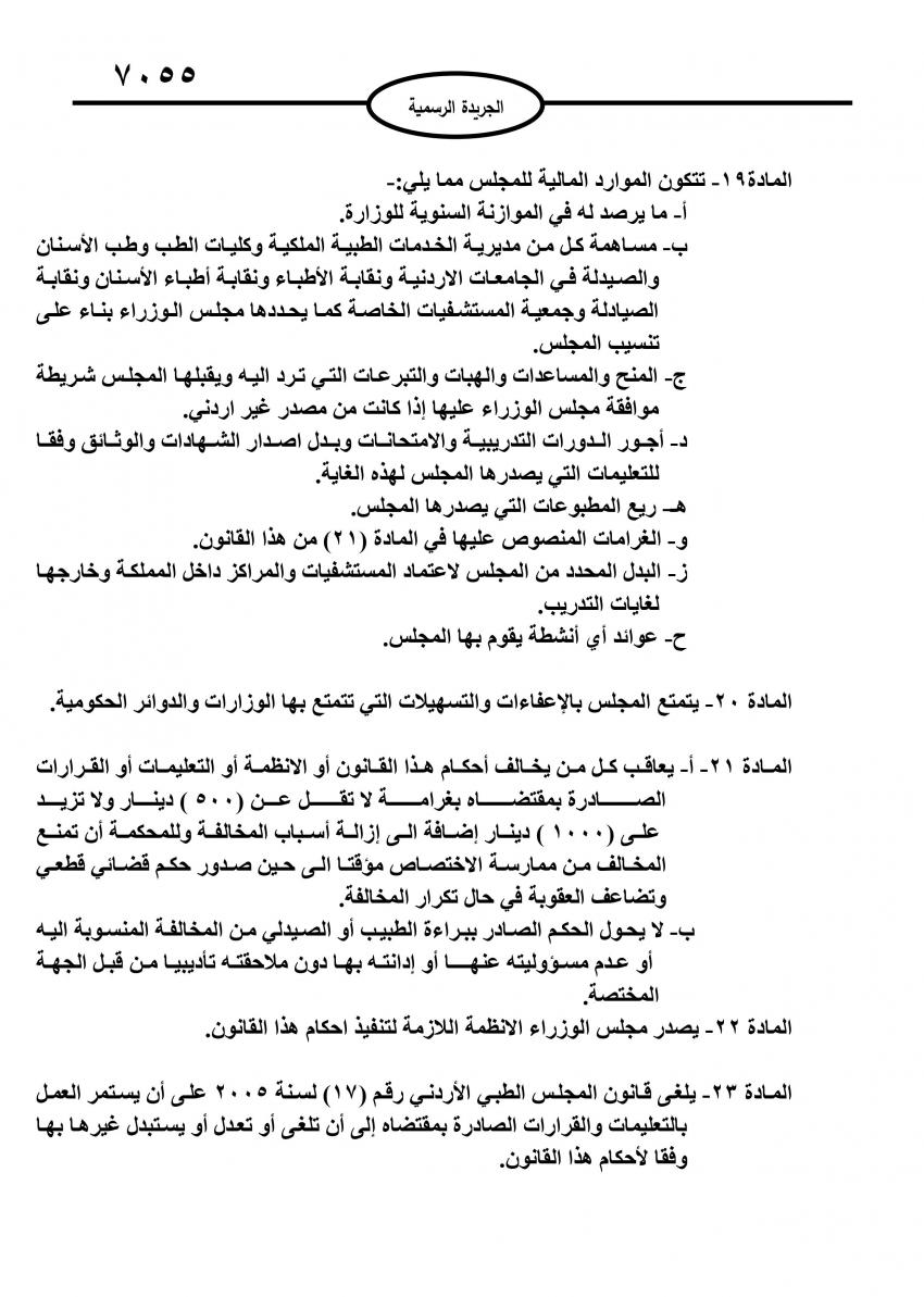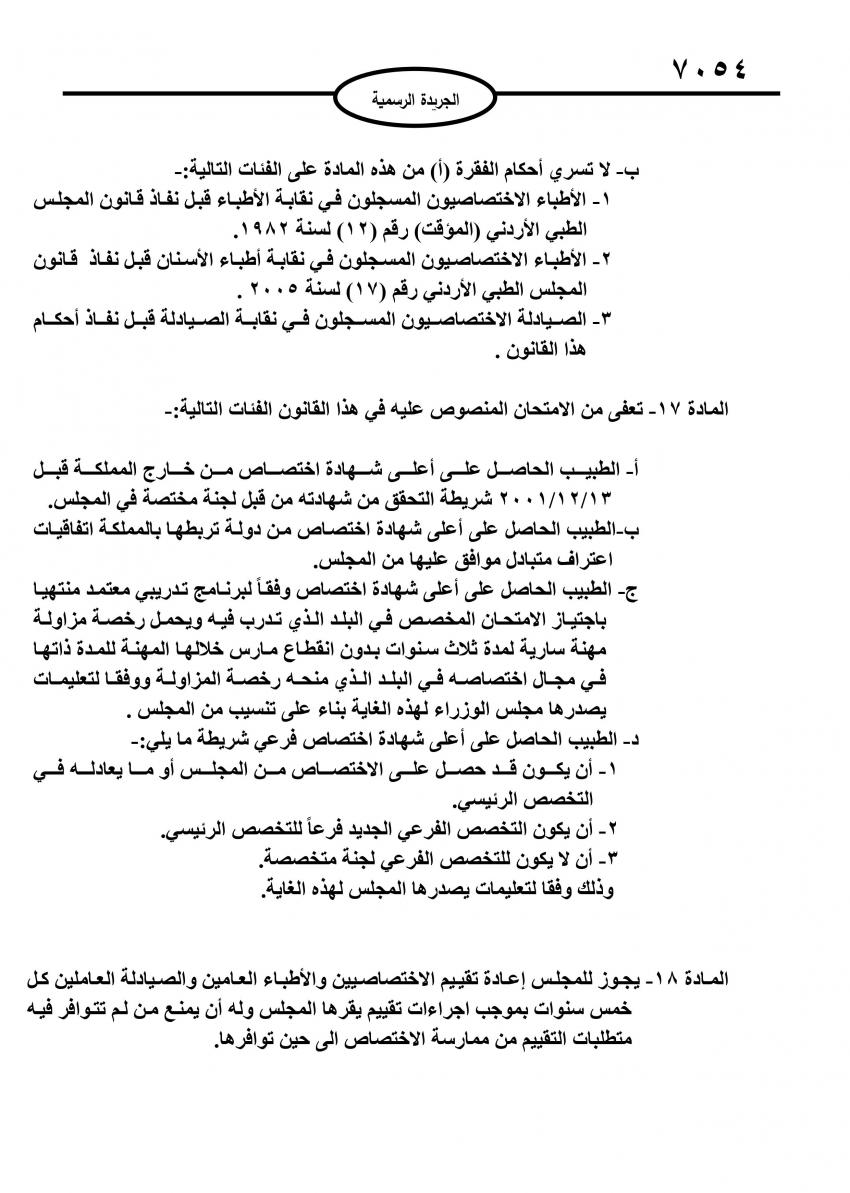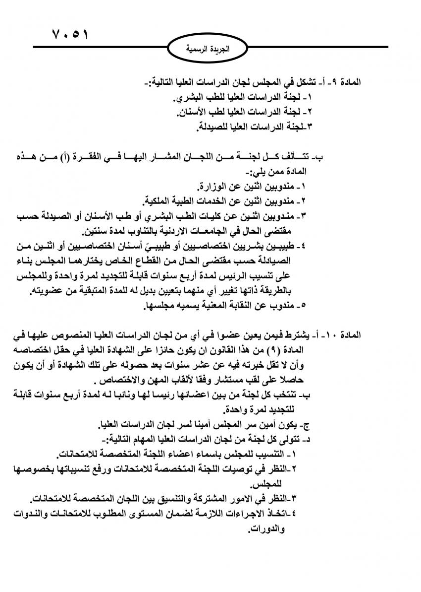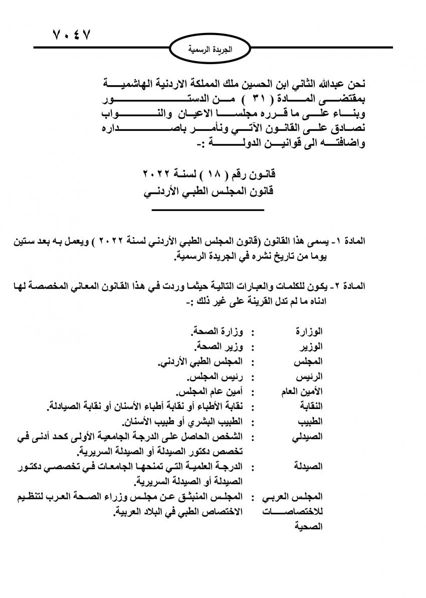 صدر في عدد الجريدة الرسمية، اليوم الأربعاء، قانون المجلس الطبي الأردني.