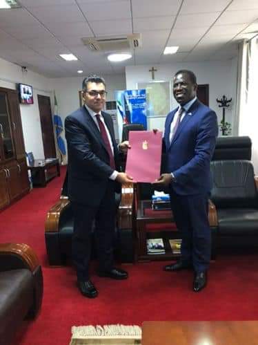 قدم السفير شريف رفعت صورة من أوراق اعتماده سفيراً لجمهورية مصر العربية لدى جمهورية سيراليون إلى وزير الخارجية والتعاون الدولى الدكتور ديفيد فرانسيس، بحضور مدير إدارة المراسم ومسئولى وزارة الخارجية السيراليونية، حيث نقل لسيادته تحيات السيد وزير الخارجية، ورغبة مصر فى تعزيز أوجه العلاقات الثنائية بين البلديّن الشقيقين فى مختلف المجالات، فضلاً عن تطلعها للتعاون مع الجانب السيراليونى لرعاية مصالح الجالية المصرية هناك.