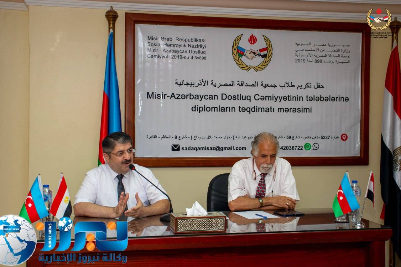 نيروز الإخبارية : نظمت جمعية الصداقة المصرية الأذربيجانية بالمقطم احتفالًا بمناسبة تقديم الإجازات والشهادات في مختلف الأنشطة، وبدأ الحفل بسماع النشيد الوطني لكل من مصر وأذربيجان.