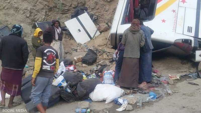 وأضافت المصادر أن الحادث أوقع أيضا 41 مصابا، بينهم 22 حالتهم خطيرة ويتلقون الرعاية الصحية اللازمة في أحد المستشفيات بمدينة الراهدة بتعز، فيما غادر بقية المصابين المستشفى.