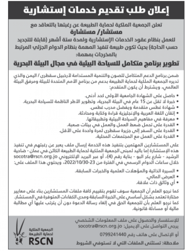 وظيفة شاغرة لدى الجمعية الملكية لحماية الطبيعة