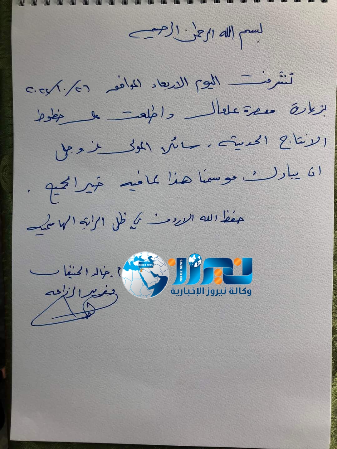 وكما أعرب المزارع فواز الجلابنة عبر نيروز  عن شكره لوزير الزراعة المهندس  خالد حنيفات، وقال أعرب عن شكري  وتقديري لمعالي وزير الزراعة خالد حنيفات لحضوره حفل افتتاح المعصرة الاتوماتيكية الحديثة  التي تحظى باهتمام كبير منا نحن المزارعين .