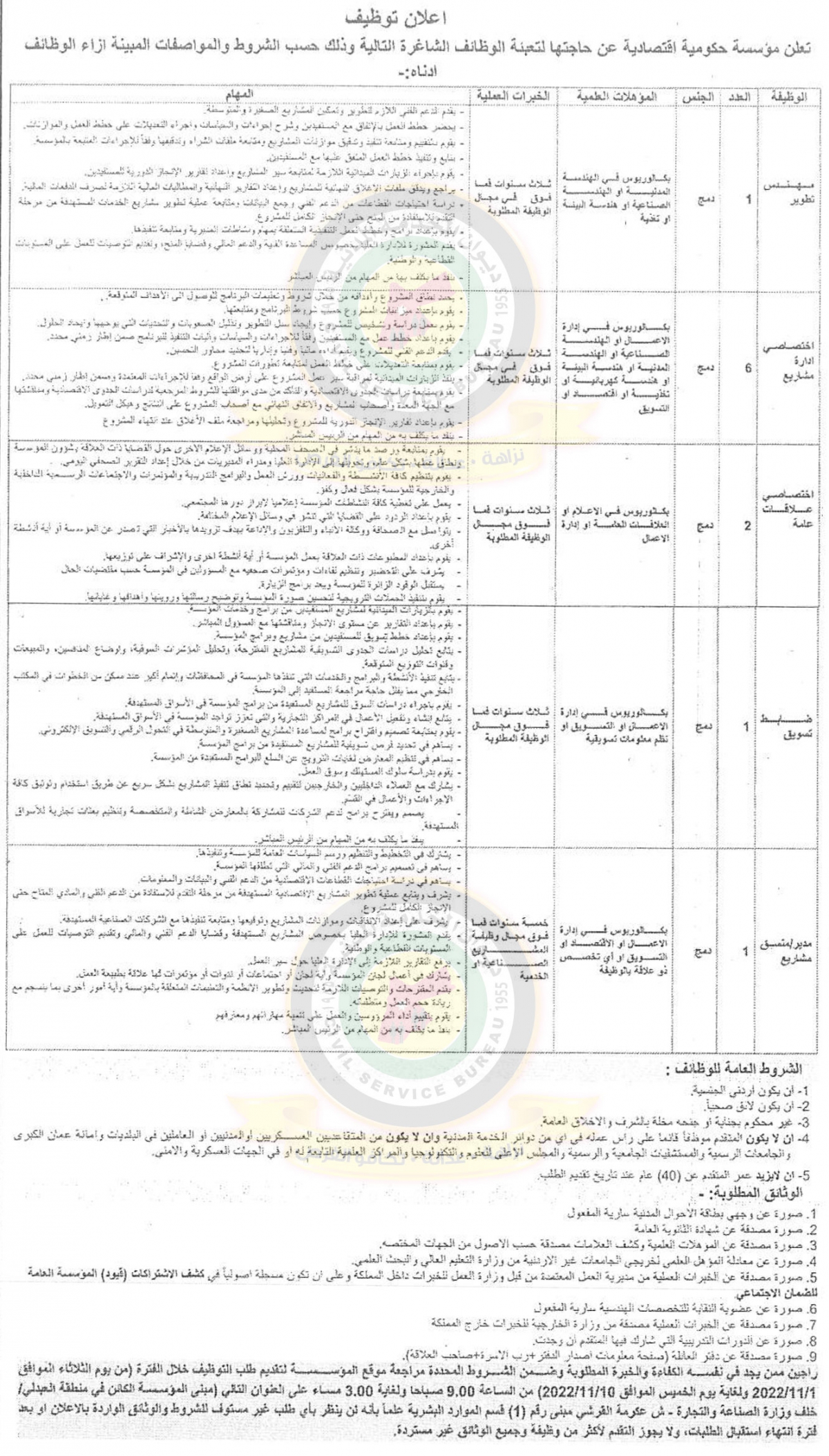 أعلنت مؤسسة حكومية اقتصادية عن حاجتها لتعبئة وظائف شاغرة وذلك وفقًا للاعلان التالي :