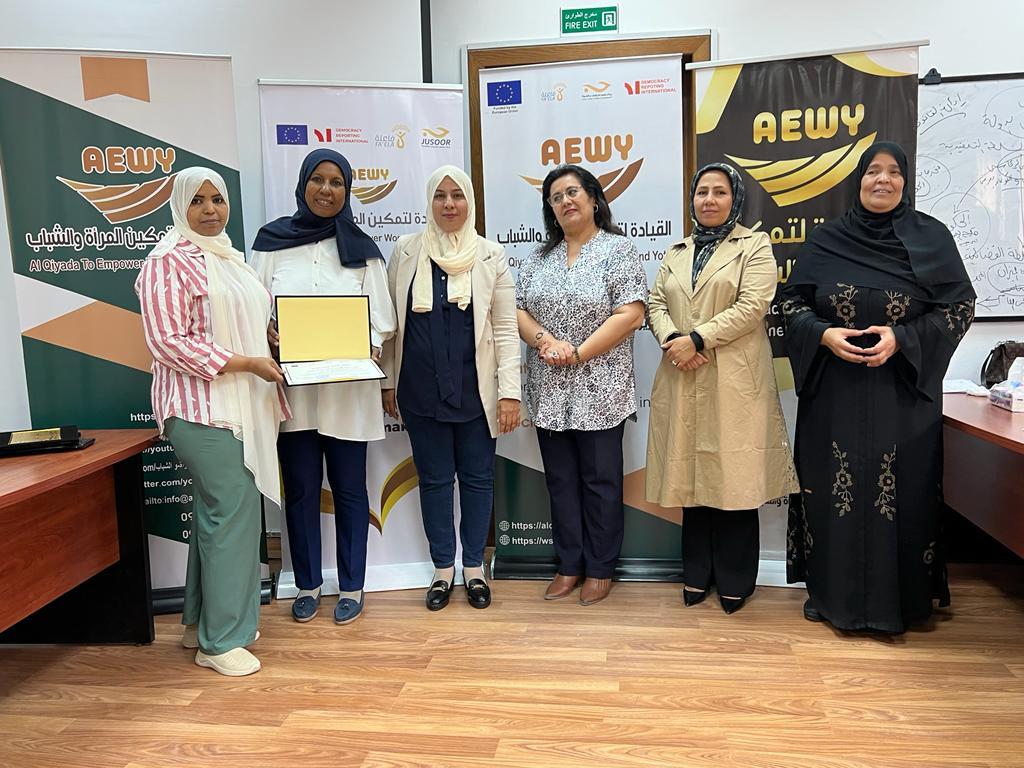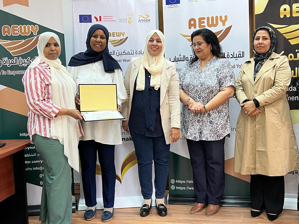 ومشروع واثقة لتعزيز مشاركة المرأة في صناعة القرار الذي تنفذه منظمة القيادة لتمكين المرأة والشباب ضمن مشروع فاعلة بالشراكة مع المنظمة الدولية للتقرير عن الديمقراطية DRI وبتعاون مركز جسور للدراسات والتنمية وبتمويل European Union in Libya / الإتحاد الأوروبي في ليبيا