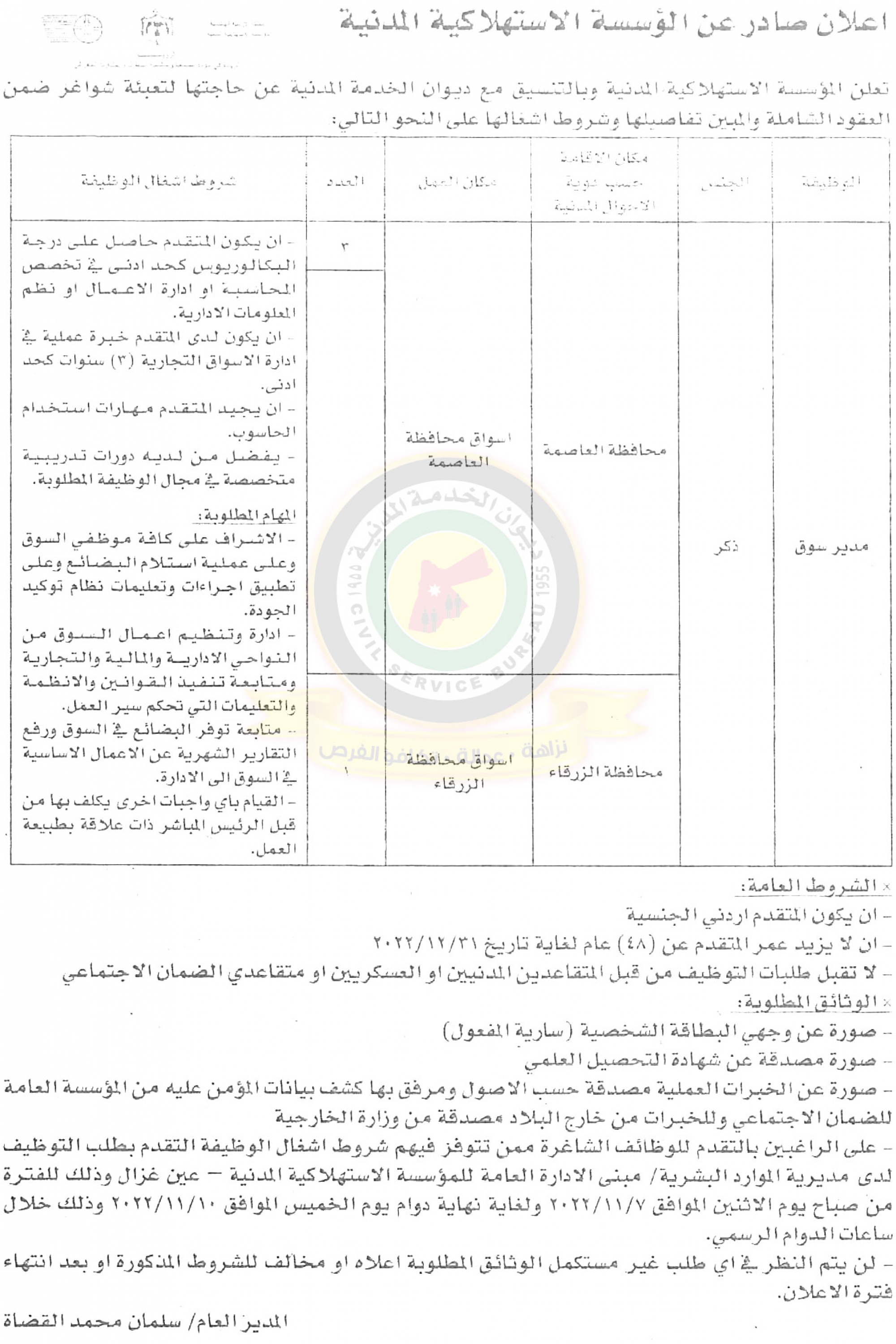 المؤسسة الاستهلاكية المدنية تعلن حاجتها لتعبئة شواغر
